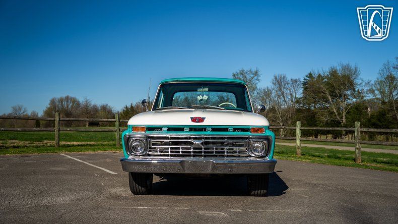 Gateway classic cars of Nashville is please to digitally present to you this stunning 1966 Ford F-100. Dressed in a striking Turquoise and White exterior, this truck is a head-turner from every angle. The matching Turquoise and White interior creates a seamless and nostalgic look that invites you to slide behind the wheel and enjoy the ride. Every detail of this truck exudes vintage style, while modern touches make it a joy to drive.