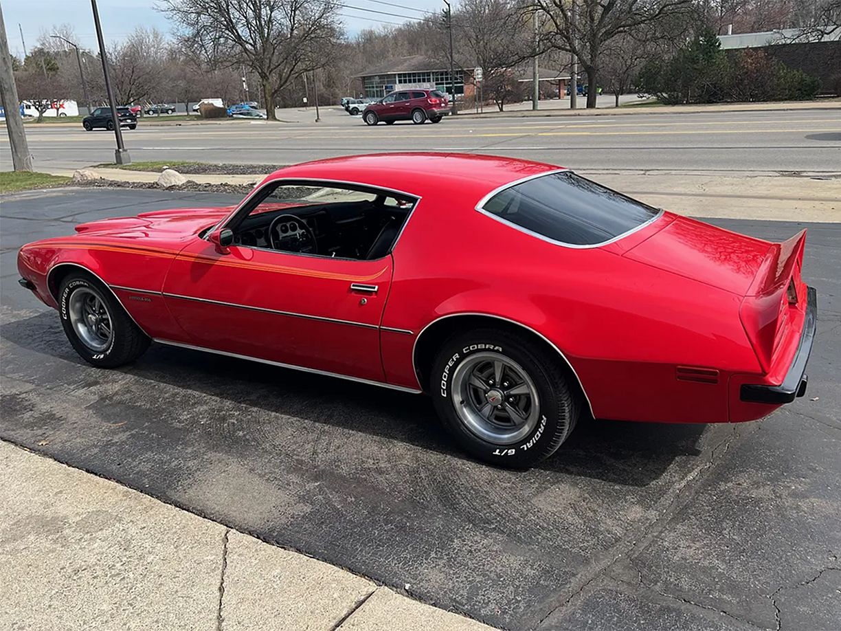 PHS Documented, factory U code Formula, Buccaneer red paint, black vinyl interior, era correct factory Y-code 455 ci engine, 4 bbl, factory intake & exhaust manifolds, Ram Air hood & air cleaner, chrome valve covers, HEI distributor, mild camshaft, power steering, power front disc brakes, factory air conditioning, 400 turbohydramatic transmission, bucket seats with center console, factory steering wheel, factory dash, custom sound system, remote drivers mirror, Flowmaster dual exhaust, 10 bolt rear axle with 3.55 gear, front & rear sway bars, 235/60R15 Cooper tires, 15” Rally II wheels, dual sport mirrors, factory spoilers, original owner’s manual & brochure, Pontiac Power!