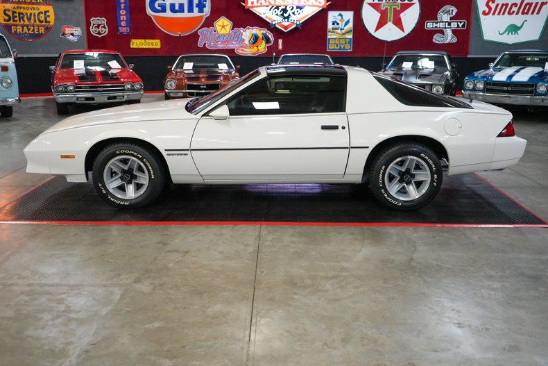 This 1984 Chevrolet Camaro F41 combines classic third-gen styling with dependable small-block performance. Powered by a 305 Small Block Chevy V8 paired with a 700-R4 overdrive automatic transmission and 3.23-geared 10-bolt rear end, it offers smooth acceleration and comfortable cruising. Equipped with air conditioning, power steering, power brakes, and four-wheel disc brakes, it delivers a balanced driving experience. The blue and black cloth interior pairs nicely with removable T-tops for open-air driving. Finished in crisp white paint, it rides on 15" IROC-Z style wheels wrapped in Cooper Cobra Radial G/T tires, giving this Camaro an unmistakable 1980s performance look and feel. THIS VEHICLE QUALIFIES FOR FREE SHIPPING AND A WARRANTY!!