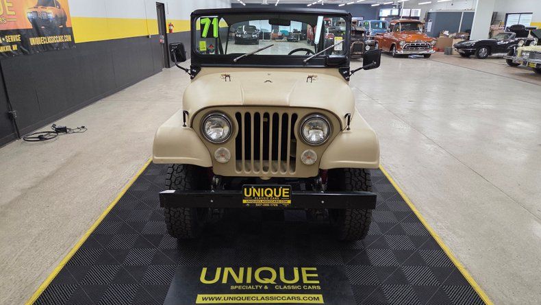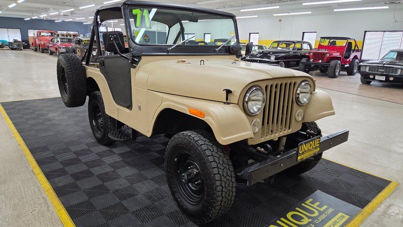The 1971 Jeep CJ5 is powered by the Dauntless V6 engine, a 225 cubic inch (3.7 liters), last offered in this model year.