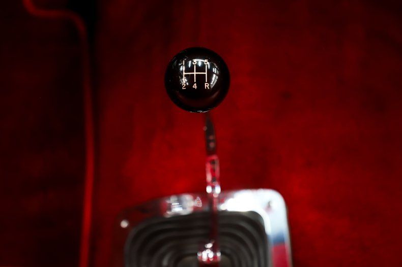 INTERIOR: The interior is just as impressive as the exterior-the contrasting red is absolutely stunning. It's clearly a professional restoration with excellent fit and finish throughout. Down on the floor is fresh red carpet, matching mats and a 5-speed shifter! The door panels are custom, yet retain a classic look and feature new window cranks, handles, and armrests. The seats have been recushioned and beautifully reupholstered. The metal trim is painted gloss red, complemented by polished billet accents across the dash. It's been upgraded with a full set of modern gauges, a retro stereo, heat and A/C controls, and a tilt column with a Billet Specialties steering wheel. Overhead, a new red headliner and matching visors complete the look. Behind the scenes, it's been updated with a new wiring harness and modern push-in fuse panel.