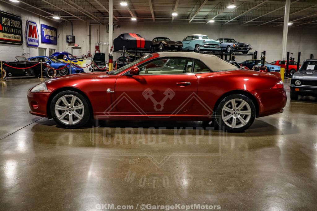 There really is nothing quite like a Jaguar, especially the XK models which were completely redesigned in 2007. Jaguar's ad campaign that year described the XK as Gorgeous. Both the car and the ad campaign were designed to help pump up this British luxury car line, which had already made great strides in improving quality since it was purchased by Ford Motor Co. in 1989 as part of Ford's Premier Automotive Group (PAG). It became evident that Jaguar could still design and manufacture a vehicle that could compete successfully in the top end of the auto business, where style, comfort and performance must be blended perfectly to meet the expectations of customers who are used to having the very best of everything. The XK delivered on the Jaguar vision of beautiful, fast cars. Both the coupes and convertibles signified a slightly new design direction for Jaguar and improved on the cars they replaced by offering more power, a roomier interior, and improved fuel economy. Among those improvements the new XK also dispelled the misconceptions that Jaguar was an older man's car, had issues with poor quality, and was behind in technology. Featured here is a stunning example featuring radiance red exterior with elegant ivory slate interior. This XK features an all-aluminum body, which made this model significantly lighter, helping both performance and increasing fuel economy. This car originated from Arizona and the paint presents with some expected minor blemishes and chips from a 15-year-old car with 107,000 miles on the clock. However, the finish still shines with a rich luster. The power convertible top matches the interior color which contrasts nicely with the red paint. Inside the cabin of this convertible exudes elegance with its burl walnut trim. Sitting in the leather upholstered seats is as comfortable as a living room recliner. The upholstery and carpet show some light wear but is otherwise free of any rips and tears. Standard amenities of this XK convertible are a security system; an Alpine audio system with six-disc, in-dash CD changer; bi-xenon headlights; Bluetooth hands- free telephone system; rain-sensing windshield wipers; reverse parking sensor; a DVD/GPS navigation system with a seven-inch color touch screen; keyless entry and start; automatic climate control; and a universal garage/gate opener. Not to mention air conditioning, cruise control, power windows, locks, and seats. Safety features include driver and passenger seat-mounted side air bags, along with seatbelt pretensioners. The trunk is clean and complete with all the factory safety equipment, and it can easily handle a couple of golf bags or luggage for a weekend trip. Under the bonnet, the engine compartment is clean and features a naturally aspirated Jaguar 4.2-liter V-8 engine. This power plant produces an impressive 300 horsepower and 310 foot-pounds of torque. A six-speed sequential-shift automatic transmission with steering-wheel-mounted paddles that let the driver shift manually. The transmission additionally features a sport mode for more aggressive automatic shifting. The undercarriage of this Jaguar is clean and presents as never having been driven in inclement weather. This XK comes equipped with power steering, a computerized active suspension electronic stability control, and power assisted antilock brakes. This is really a great driving car, with outstanding performance and handling but still practical for everyday use. This would make a great seasonal driver to enjoy sunny days with top-down driving. Or, this car would make an excellent vessel for weekend trips or day tours of the local countryside with the wind blowing through your hair and all your concerns in the rearview mirror! Please call if interested or e-mail with specific questions. Thanks for looking.