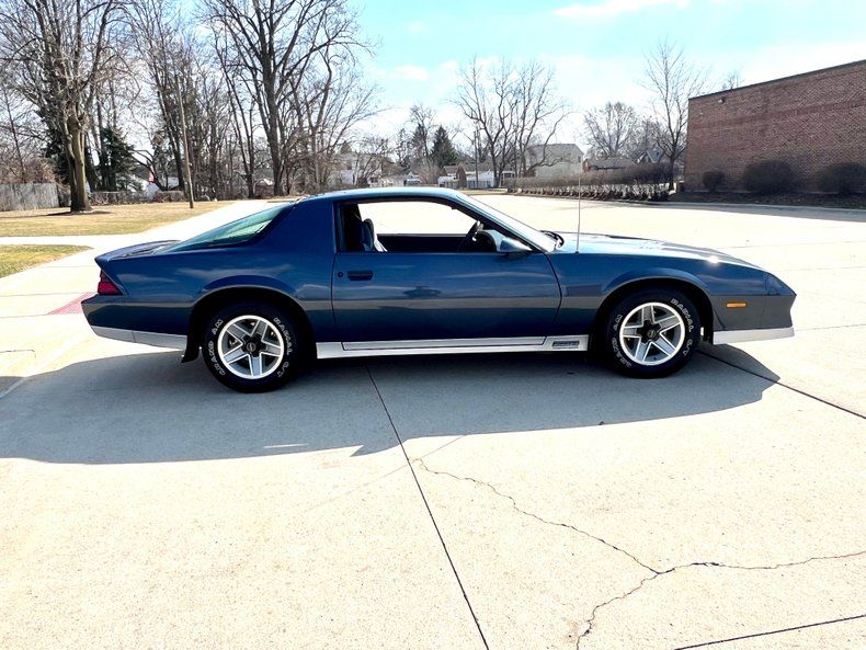 This 1983 Chevrolet Camaro Z28 is finished in Dark Blue Metallic with silver accents over Dark Blue cloth upholstery and is powered by a fuel-injected 305ci LU5 V8 paired with a four-speed automatic transmission. Equipment includes 15 five-spoke alloy wheels, power-assisted front disc brakes, a cassette stereo, an Extended Range Sound System, air conditioning, cruise control, and power windows and door locks.
