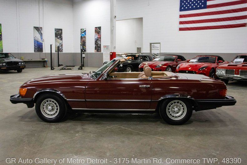 GR Auto Gallery is pleased to present this 1983 Mercedes-Benz 380SL for your consideration. This classic roadster comes in a rich Burgundy exterior complemented by a well-kept Brown interior. Powering this 380SL is a 3.8L V8 paired with an automatic transmission, delivering a smooth and refined driving experience. This example has been well cared for and features a recent paint correction, a removable hard top, and a manual Black convertible soft top. Originally a Kentucky vehicle, it comes equipped with power windows, climate control, chrome accents inside and out, a Becker Grand Prix Electronic stereo, a spacious trunk, P205/70R14 tires, and has benefited from frequent oil changes. Additionally, a car cover is included with the sale. Drive this one out of our showroom or have us assist with shipping it to you anywhere in the United States! Don't hesitate to call us with any questions or for more information.