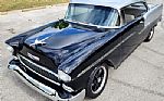 Inside the car has been redone with Gray upholstery combined with Black carpeting. It has a split front bench seat with the full bench in rear. The dash and the upper sections of the door panels have been painted a suede Black. On the dash it has mostly a stock layout with the central grill and clock along with stock style gauges. The steering column has also been painted and is fitted with a 3 spoke custom wheel.