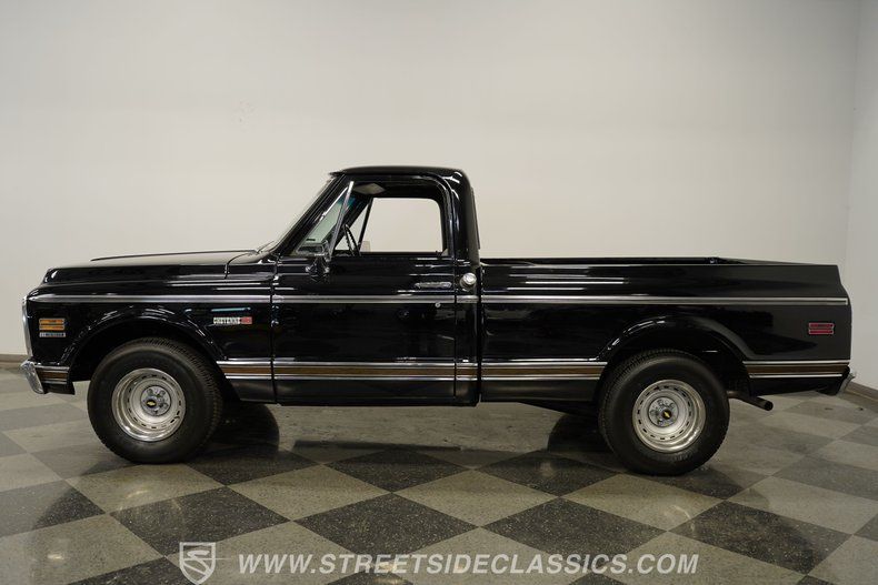 There is something deeply captivating about the 1972 Chevrolet C10 that transcends time, evoking memories of open roads and endless summer drives. This pickup is not just a vehicle, but a rolling statement of classic American craftsmanship and rugged charm. Its sleek tuxedo black finish reflects a bygone era's elegance while promising the thrill of a powerful drive. Whether it's the gleam on its aluminum moldings or the nostalgic rumble beneath the hood, this C10 invites you to reconnect with the pure joy of driving. This is a beautifully redone truck that's a true gem for any enthusiast looking for style and substance.