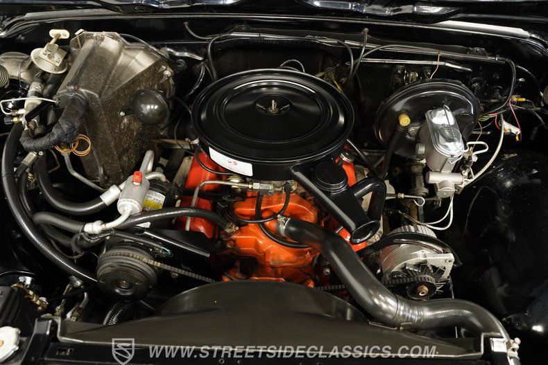 Step inside and you're greeted with a factory-style interior that perfectly balances comfort and vintage appeal. The bench seat, upholstered in quality black vinyl, offers a cozy perch for driving or cruising. The door panels, headliner, and carpet are all in very good condition, wrapping you in an environment that feels both authentic and inviting. Adding modern convenience, the tilt steering column and AM/FM radio enhance the driving experience without detracting from its classic soul.