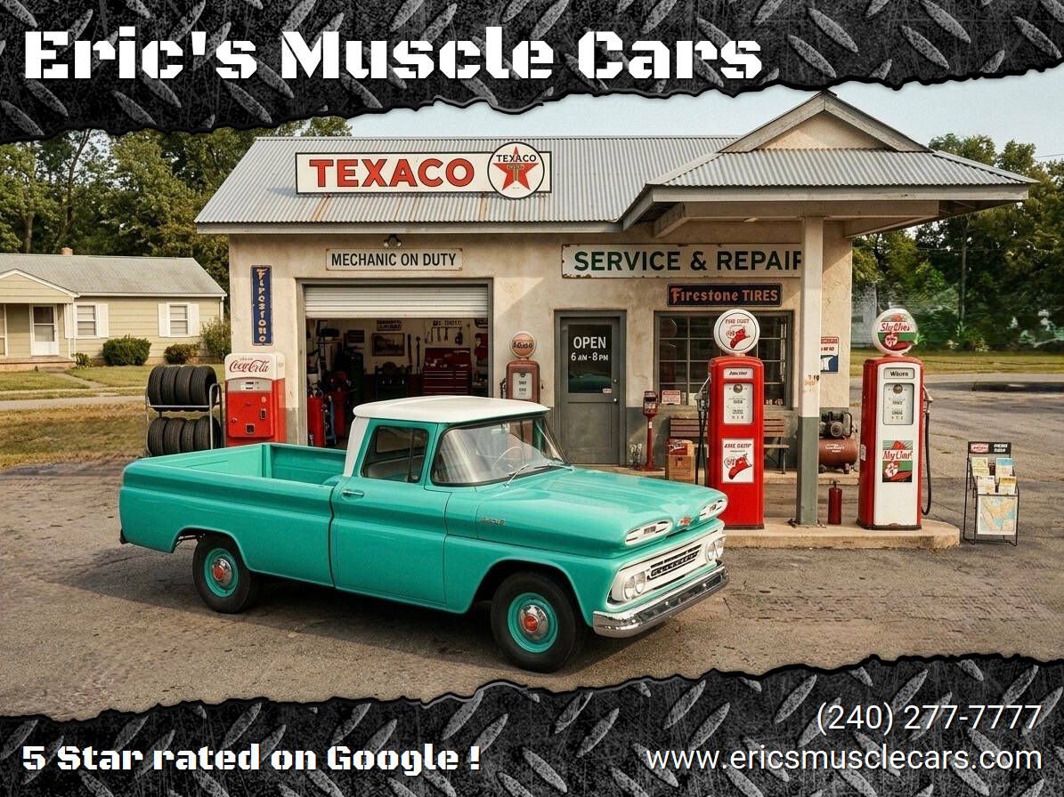 Erics Muscle Cars is proud to offer this 1961 Chevy C-10 Apache straight side. Original Drivetrain is an inline 6 cylinder 235 cu in engine and a three speed column shift trans. Mileage right now id 60,554. Owner installed front disc brakes, a Clifford 2bbl carburetor and matching intake and exhaust manifolds, new seatbelts, new fuel pump as well as a new stainless exhaust and muffler.Owner installed the tonneau cover. The original 6-lug 15 x 5 wheels come with the purchase as well as the original front drum brakes, spindles, etc. Owner added all new matching wheels on the truck because the front disc calipers needed more clearance. There is a spare as well. The truck has (5) new wheels and tires. A fun driver that gets thumbs up wherever it goes.