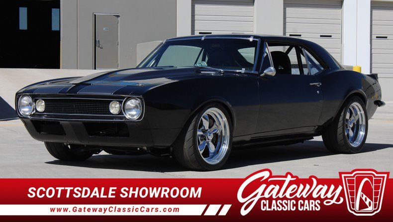 Gateway Classic Cars of Scottsdale is excited to digitally present this menacing 1967 Chevrolet Camaro, finished in a sleek black exterior with a matching black cloth interior. As you grip the wheel, the Tremec 6-speed manual transmission beckons you to take control, while the Vintage Air Conditioning ensures your comfort no matter the weather. The seatbelts secure you in place as you fire up the 421 V8 engine, its rumble amplified by Hooker Headers and a throaty 3-inch dual exhaust system. This is more than a car-it's an experience.
