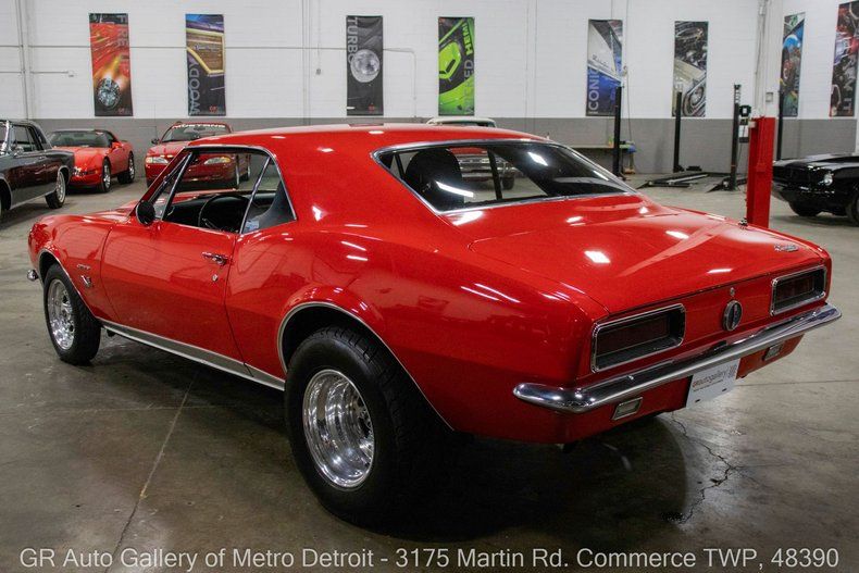 GR Auto Gallery is pleased to present this 1967 Chevrolet Camaro RS for your consideration. This Camaro comes finished in a Viper Red exterior over a clean Black interior. Powering this beast is a freshly rebuilt 454 cubic inch V8 featuring 427 heads and crank, producing 346 horsepower. The engine was rebuilt in 2023 by L&M Machinery in New Carlisle, Ohio, and has been dyno tuned by Rhino. Power is sent to the rear wheels through a TH350 automatic transmission paired with a 2600 stall converter and a durable Ford 9-inch rear end with 3.73 gears. This Camaro is loaded with performance and aesthetic upgrades including Holley Sniper EFI, ceramic headers, a 3-inch custom exhaust system from the headers back, BE-COOL aluminum radiator, and a performance fuel system. It rides on Weld wheels with massive 28x12.00R15LT rear tires and 24x5.00R15LT front tires, giving it an aggressive stance. Additional features include ProCar bucket seats, Auto Meter gauges, halogen headlights, chrome front and rear bumpers, crank windows, a spacious trunk, and a factory steel body. This garage-kept example is an excellent blend of classic muscle and modern upgrades. Drive this one out of our showroom or have us assist with shipping it to you anywhere in the United States! Don't hesitate to call us with any questions or for more information.