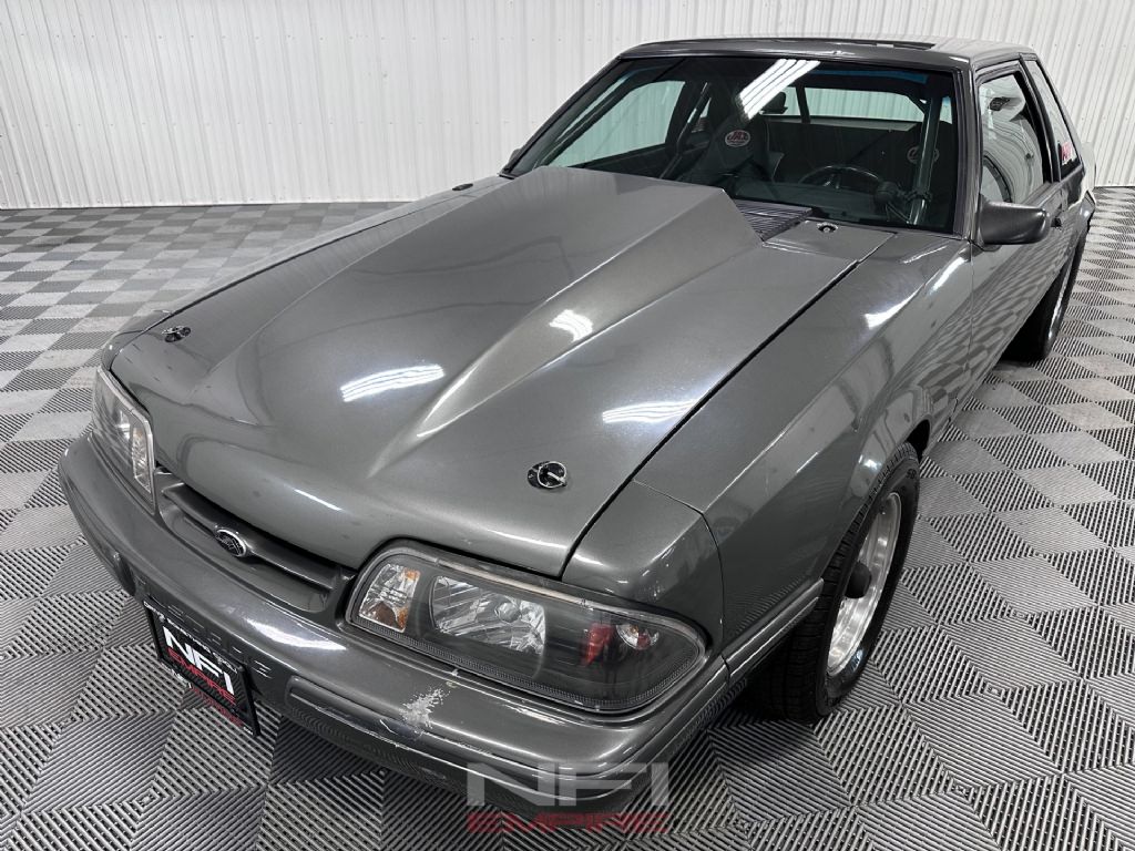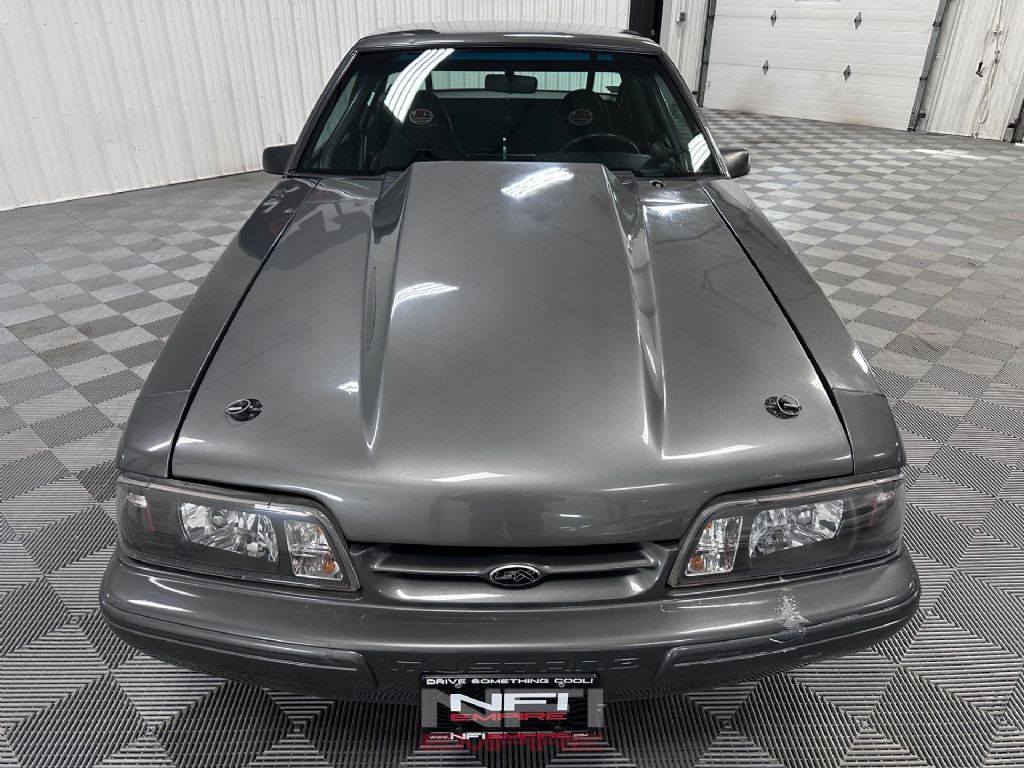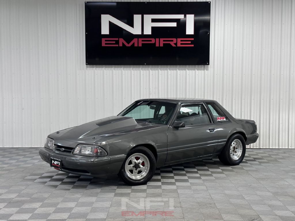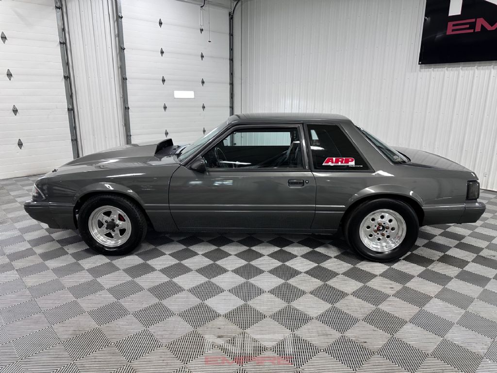 Inside, this Mustang continues the race-focused theme with a caged interior, Jaz Products bucket seats, and Simpson racing harnesses. The factory cluster has been supplemented with Equus gauges for tach, oil pressure, boost, and water temperature, giving the driver added monitoring of the engine's key vitals. Altogether, this Fox-body is a purpose-built, heavily modified Mustang with the right mix of power, supporting hardware, and stripped-down function for someone looking for a street/strip-style build.