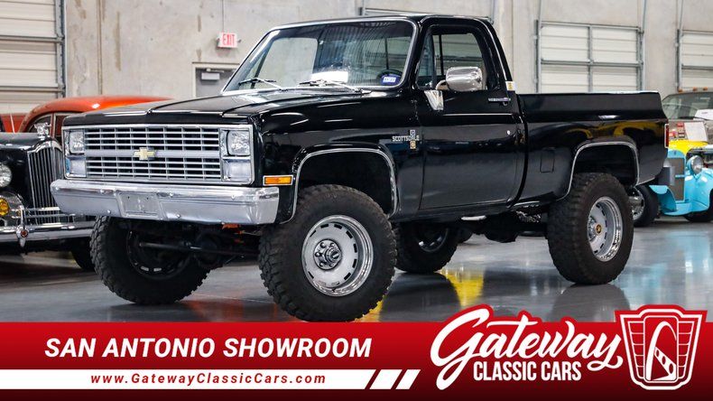Gateway Classic Cars of San Antonio/Austin is proud to present this 1983 Chevrolet K10 Scottsdale, dressed in a PPG House Chrysler Black exterior and complemented by a warm tan interior. This short-bed pickup delivers timeless style with a rugged edge, blending classic square-body looks with thoughtful upgrades.