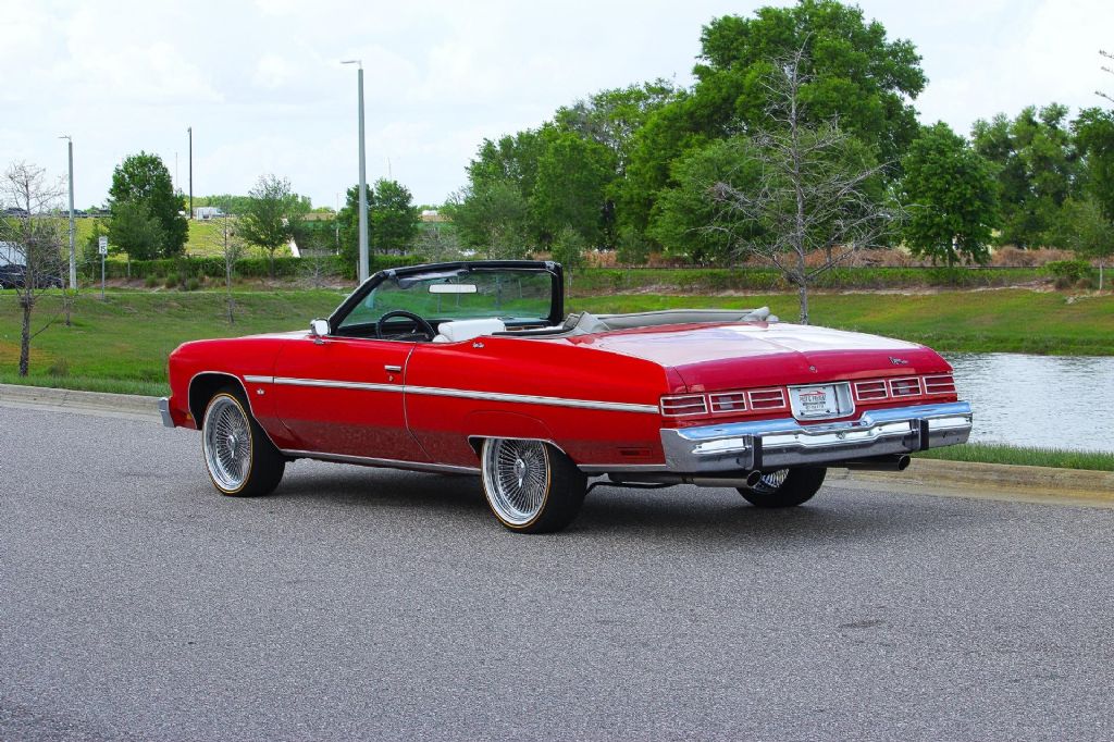 1975 Chevrolet Caprice Classic Convertible This 1975 Chevrolet Caprice Classic Convertible represents everything that made full size American convertibles so special comfortable cruising style timeless design and the kind of presence that simply cannot be duplicated today Finished in a beautiful red exterior with a white power convertible top this Caprice delivers the perfect color combination for top down driving. A brand new top is being installed further enhancing both its appearance and functionality. The paint presents very well and has been professionally treated with a ceramic coating giving it a deep shine and added protection Under the hood sits the dependable small block 400 V8 paired with an automatic transmission offering smooth reliable power for effortless cruising. This car has undergone extensive mechanical attention including a new gas tank and new radiator along with additional work completed to ensure it starts runs and drives with confidence. Everything functions as it should including all lights and accessories which is a testament to the level of care this car has received This Caprice was previously owned by the same individual since 1986 which speaks volumes about its history and how it has been maintained over the years. It is not just a car it is a long term kept and enjoyed classic that is ready for its next chapter The car offers a unique blend of classic originality and modern upgrades. It currently sits on 20-inch stamped Dayton wire wheels with brand new two prong spinners and vogue tires giving it a bold custom look. For those who prefer a more original appearance the car also can come with 14-inch factory wheels wrapped in new white wall tires and fitted with wire hubcaps. You can choose one set of wheels for whichever style best fits your vision Inside the car has been upgraded with a modern sound system featuring a Kenwood Bluetooth radio two Rockford Fosgate amplifiers mids and highs along with two 12-inch Rockford Fosgate subwoofers housed in a custom enclosure with integrated lighting. This setup delivers a powerful and clean audio experience while cruising With documented original miles cold air conditioning and a strong running drivetrain this Caprice offers the best of both worlds a classic full size convertible that can be enjoyed immediately with confidence This is the kind of car you take out on a sunny day drop the top and simply enjoy the drive Key Highlights Original documented miles Small block 400 V8 engine Automatic transmission Cold air conditioning New white power convertible top being installed Ownership history since 1986 Runs and drives great All mechanical work completed for reliable drivability New gas tank New radiator Red paint with ceramic coating All lights and features working Front and rear bumper guards Wheels and Tires Options 20 inch stamped Dayton wheels Brand new two prong spinners Vouge Tires OR 14 inch original stock wheels New white wall tires Wire hubcaps Audio and Interior Features Kenwood Bluetooth stereo system Two Rockford Fosgate amplifiers Mids and highs upgraded Two Rockford Fosgate 12 inch subwoofers Custom enclosure with lighting This Caprice Classic Convertible is a rare opportunity to own a well-cared for full size convertible with documented history tasteful upgrades and the ability to enjoy it immediately. While we do our best to provide the highest quality muscle cars with an honest and reliable description and realize the importance of transparency when selling vehicles. That being said, we have not built, modified, changed or personally owned this vehicle. Whether this vehicle is consigned or owned by Past & Present Motor Cars we do not know the vehicles complete history since new. We want to be clear and try to answer any questions our customers might have prior to purchasing. Additionally, we not only welcome but we encourage 3rd party independent inspections. Please inquire prior to purchase to make sure the advertised vehicle has not already been sold. We list our vehicles on multiple websites and a vehicle can sell at any time. If a customer chooses to purchase sight unseen (many of our customers choose this option) the customer accepts the vehicle AS IS and WHERE IS and understands we cannot address concerns after purchase. For this reason, it's important all concerns are addressed prior to purchase. We make every effort to present accurate and reliable information, but use of this information is voluntary, and should only be deemed reliable after an independent review of its accuracy, completeness, and timeliness. It is the sole responsibility of the customer to verify the existence of options, accessories and the vehicle condition before time of sale. Financing is Available with low rates and Vehicle Shipping is available from our Showroom to your Garage. A Classic Car Warranty is Available for Purchase from a 3rd Party. Please speak to our Sales Associate or Company Representative for more information. Our team is working and available anytime by Phone or Text for your convenience at 407-559-7759. Thank you for your interest!