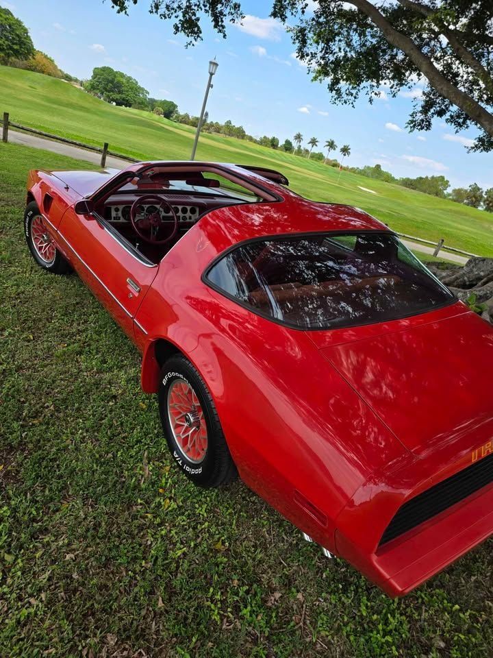 This 1979 Pontiac Trans Am is a highly original and well-preserved example, finished in Code 75 Mayan Red paint. The exterior shows very well with its original paint, complemented by the iconic Firebird hood decal that remains vibrant and eye-catching. The body is described as rust-free, and the overall presentation reflects careful ownership over the years.