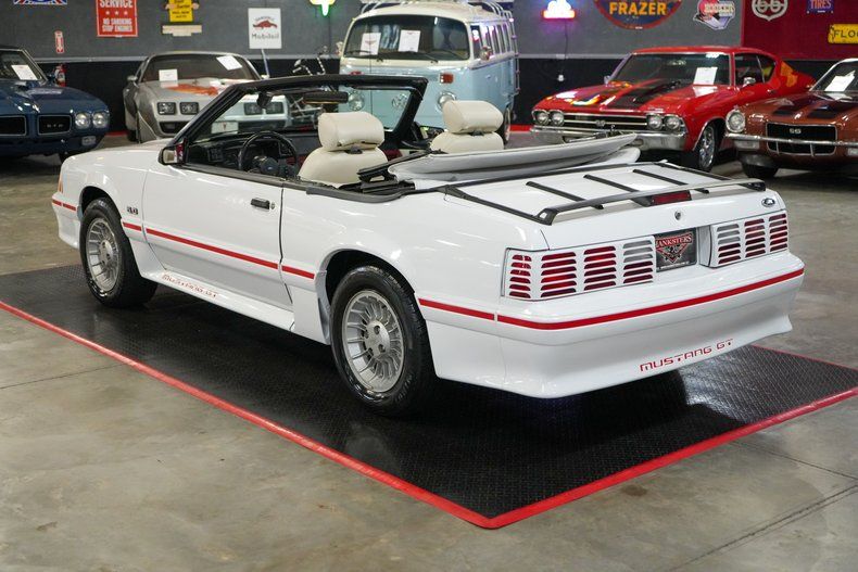 This 1987 Ford Mustang GT Convertible is a clean, well-preserved Fox-body powered by the legendary 5.0L Small Block Ford V8 paired with an AOD automatic transmission and a Ford 8.8 POSI rear end. Showing just 78K original miles and backed by a Clean CarFax, it offers classic 1980s Mustang performance and style. Equipped with electronic fuel injection, air conditioning, power steering, and power brakes, it delivers smooth and reliable driving. The white leather interior pairs perfectly with the white exterior and white convertible top. Riding on OEM aluminum wheels with Uniroyal tires, this Mustang GT captures the iconic Fox-body era. THIS VEHICLE QUALIFIES FOR FREE SHIPPING AND A WARRANTY!!