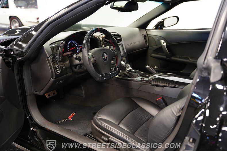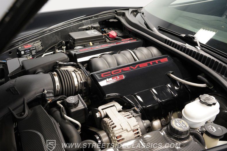 Under the hood roars a potent LS3 6.2L V8, offering the exhilarating rumble and throttle response you expect from a modern Corvette. Paired with a 6-speed paddle shift automatic transmission, this Grand Sport delivers smooth gear changes and precise control. The factory suspension, power steering, and power disc brakes ensure a composed and thrilling ride, while the black painted dress-up and carbon fiber radiator covers highlight the meticulous attention to detail under the hood.