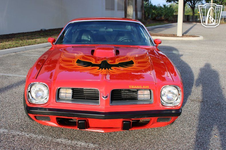 Gateway Classic Cars Tampa Showroom is FIRED UP to digitally present this screaming 1975 Pontiac Firebird Trans Am. In the mid 70's the Z28 was dead. The Corvette was a pathetic 165hp slug, and the Mustang...well never mind. However, the Trans Am was the defiant General Motors step child refusing to sit down and be quiet. The consigner of this gorgeous bird is in his 80s now but purchased the car in 1976 and never let it go. When we asked how his wife reacted when he pulled in the driveway after purchasing the then like new car he stated, "She was not happy." Quite the car guy, the owner recently decided to make the Trans Am better, much better. In 2017 the car was beautifully resprayed in its original Buccaneer Red. (75L75U). Don't be fooled, she looks stock and if you're thinking this is simply a meager 200hp poncho from the 70s, you'd be sadly mistaken. Under the hood rests a Butler big block cranking out an estimated 500hp. Real Pontiac people know Butler. Enough said. Keeping the torque monster civil on the streets is a Tremec 5-speed transmission and you won't find the paltry ten bolt GM rear diff underneath but a 9" Ford assembly with 3.90 gears. But wait there's more. Doug's ceramic headers, QA1 coil overs, Wilwood brakes, tubular upper and lower control arms, aluminum radiator, electric fans, serpentine pulley system and a killer sound system....we are running out of space here. Gear heads know that 2nd Gen Firebirds are on everyone's list and we dare you to find another that is basically a one owner, garage kept car. You can see this one on the showroom floor of our Tampa location.