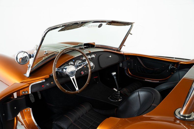 Underneath, the Ford Super 8.8 independent rear end with 3.55 gears, coilovers at all four corners, and power 4-wheel disc brakes give this Backdraft Cobra for sale modern handling and stopping capability to match its power.