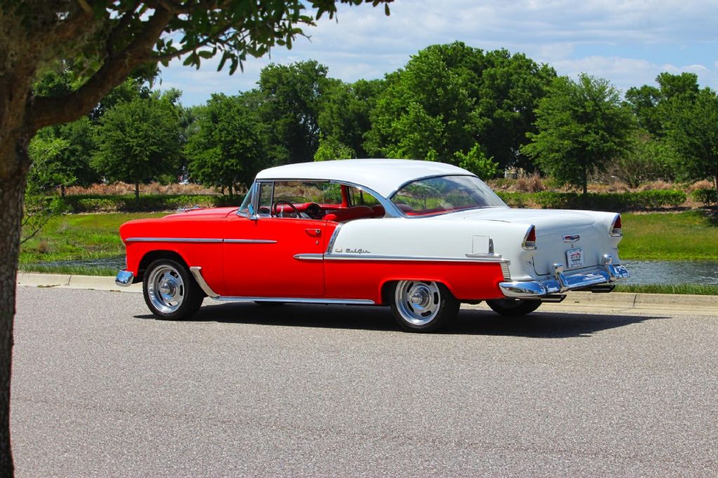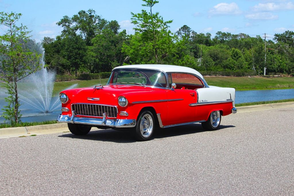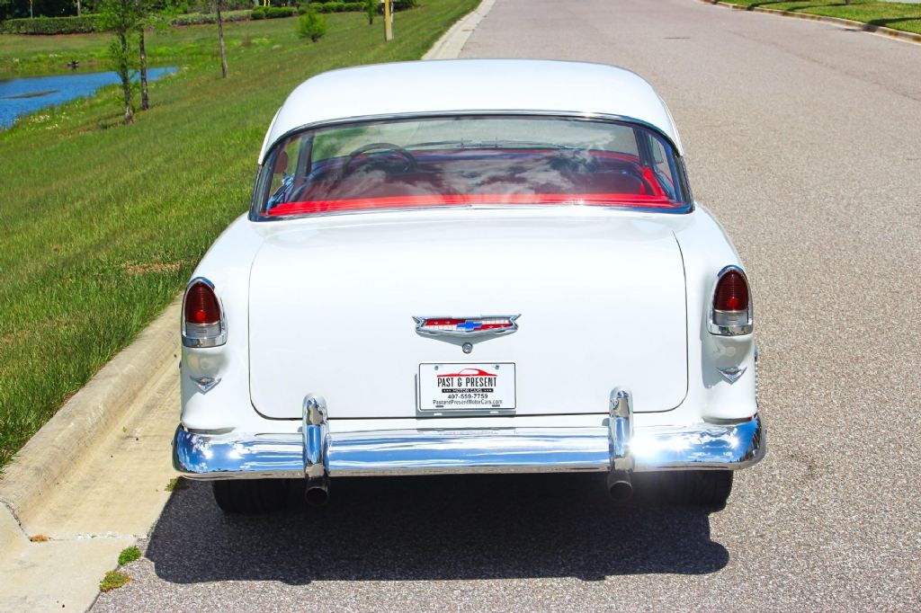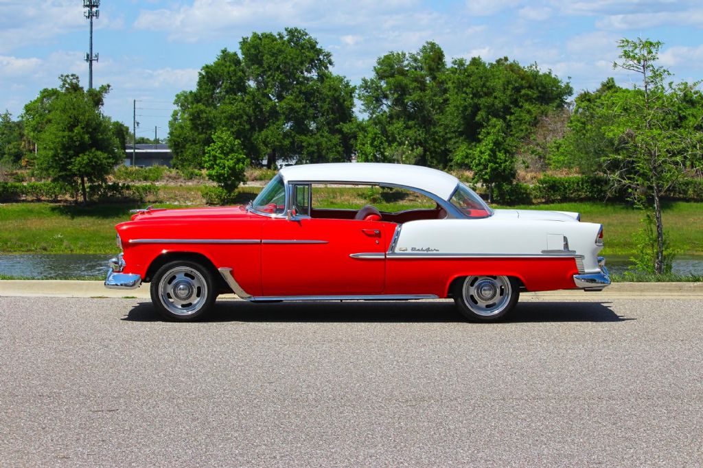 1955 Chevrolet Bel Air 2 Door Hardtop " Gypsy Red & India Ivory, 350 V8, A/C, Power Steering, Disc Brakes Up for sale is a beautifully restored and highly desirable 1955 Chevrolet Bel Air 2 Door Hardtop, finished in its iconic factory-designated color combination of Gypsy Red and India Ivory over a striking Red and White interior. This is one of the most recognized and celebrated American classics ever produced, and this example delivers the perfect balance of vintage style and modern drivability. This Bel Air has been very nicely restored and presents exceptionally well throughout. The two-tone paint combination has a timeless look that immediately draws attention, while the brightwork, trim, and overall fit and finish give the car a strong presence wherever it goes. Simply put, this is a real head-turner. Under the hood, the car is powered by a reliable and upgraded 350 V8 engine paired with a Turbo 350 automatic transmission. This combination provides smooth, consistent power and makes the car easy and enjoyable to drive in todays conditions. The driving experience is further enhanced with desirable upgrades including power steering and power front disc brakes, giving the car improved handling and stopping performance. Air conditioning has also been added, making this classic much more comfortable for cruising in warmer climates. Additional upgrades include an aluminum radiator for improved cooling, dual exhaust for a strong and classic sound, and a custom steering wheel that adds a unique touch to the interior. The car sits on 17-inch Rally wheels wrapped in black wall tires, giving it an updated stance while still maintaining a classic muscle-inspired appearance. Highlights Include: 350 V8 Engine Turbo 350 Automatic Transmission Gypsy Red and India Ivory Two-Tone Exterior Red and White Interior Power Steering Power Front Disc Brakes Air Conditioning Aluminum Radiator Dual Exhaust Custom Steering Wheel 17-inch Rally Wheels with Black Wall Tires Very Nicely Restored Excellent Overall Presentation This 1955 Chevrolet Bel Air is the kind of car that checks all the boxes. It has the iconic looks everyone wants, combined with the right upgrades to make it a true driver. Whether you're looking for a weekend cruiser, a show car, or a standout addition to your collection, this Bel Air delivers on all fronts. While we do our best to provide the highest quality muscle cars with an honest and reliable description and realize the importance of transparency when selling vehicles. That being said, we have not built, modified, changed or personally owned this vehicle. Whether this vehicle is consigned or owned by Past & Present Motor Cars we do not know the vehicles complete history since new. We want to be clear and try to answer any questions our customers might have prior to purchasing. Additionally, we not only welcome but we encourage 3rd party independent inspections. Please inquire prior to purchase to make sure the advertised vehicle has not already been sold. We list our vehicles on multiple websites and a vehicle can sell at any time. If a customer chooses to purchase sight unseen (many of our customers choose this option) the customer accepts the vehicle AS IS and WHERE IS and understands we cannot address concerns after purchase. For this reason, it's important all concerns are addressed prior to purchase. We make every effort to present accurate and reliable information, but use of this information is voluntary, and should only be deemed reliable after an independent review of its accuracy, completeness, and timeliness. It is the sole responsibility of the customer to verify the existence of options, accessories and the vehicle condition before time of sale. Financing is Available with low rates and Vehicle Shipping is available from our Showroom to your Garage. A Classic Car Warranty is Available for Purchase from a 3rd Party. Please speak to our Sales Associate or Company Representative for more information. Our team is working and available anytime by Phone or Text for your convenience at 407-559-7759. Thank you for your interest!