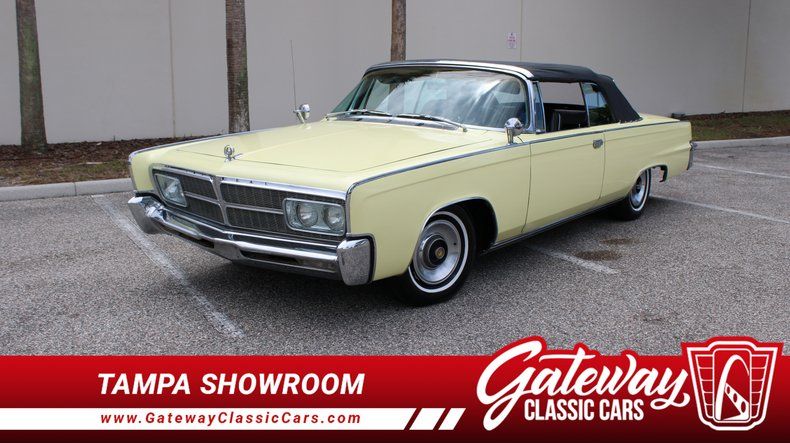 Gateway Classic Cars Tampa Showroom is proud to digitally present this 1965 Chrysler Imperial Crown Convertible. In the mid '60s big convertibles where all the rage and the Imperial Crown was Chryslers luxurious convertible entry. Allegedly only 633 of Imperial Crowns rolled off the assembly line making these one rare Mopar. You have to ask yourself, how many are still on the road today? This Crown has beautiful interior that's extremely comfortable. The electric power top works just as it should and the a/c does it best to blow cold it just may take it a bit. In full discloser, the rear power windows are inop and the brakes are a bit soft. That said, the pale yellow exterior combined with a black top is a nice combination. If you are a die hard Chrysler guy, you know these don't come up for sale often so here is your chance!