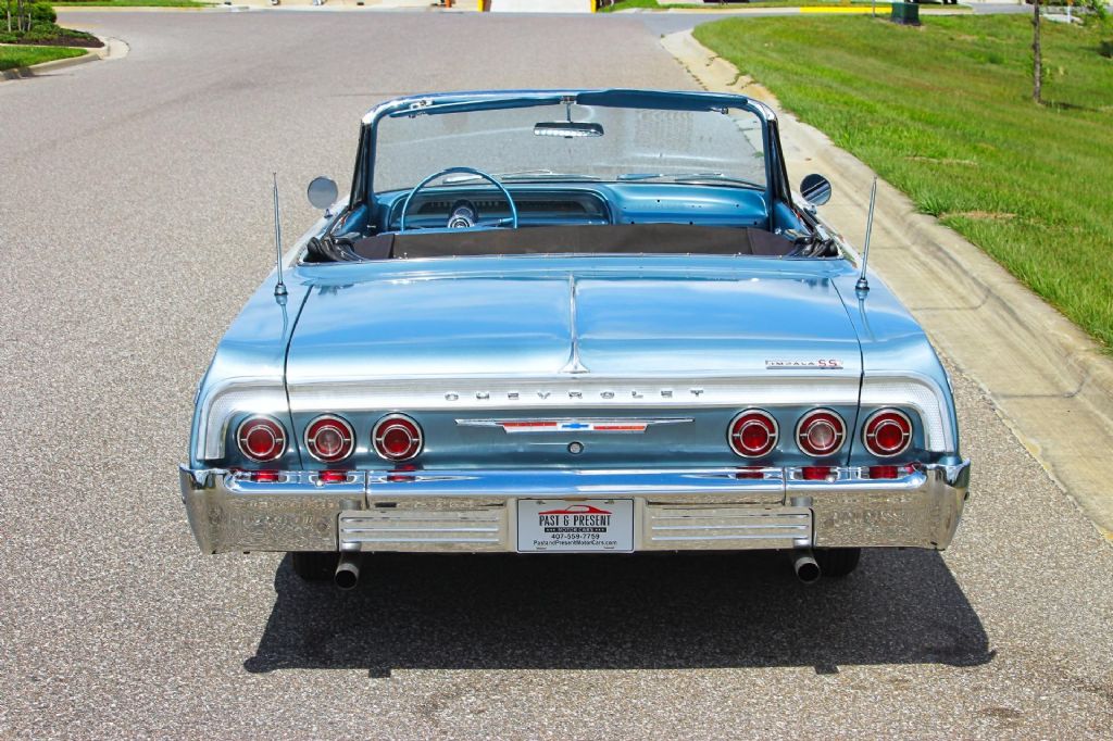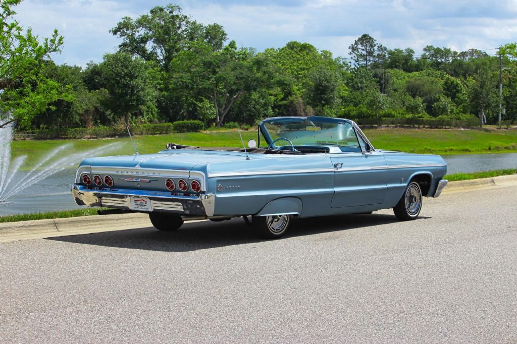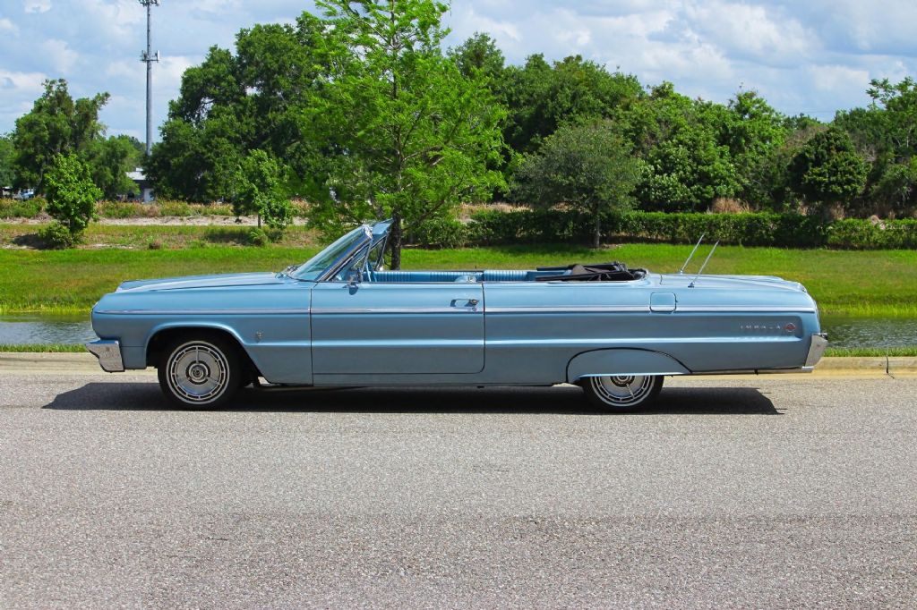 1964 Chevrolet Impala SS Convertible, Silver Blue Poly, Bucket Seats, Console, Power Top Up for sale is a beautiful and highly recognizable 1964 Chevrolet Impala SS Convertible, finished in the very desirable Silver Blue Poly exterior over a Blue bucket seat interior with center console. This is one of the most iconic body styles Chevrolet ever produced, and this example has the look, presence, and options that enthusiasts are searching for. Powering this Impala is a 283 V8 engine paired with 2 speed automatic transmission, offering smooth performance and an easy, enjoyable driving experience that makes this car ideal for cruising. The car sits exactly the way an Impala SS Convertible should, equipped with correct 14-inch wheels and proper SS hubcaps, along with fender skirts that give it that long, clean, classic profile. Dual exhaust adds the right sound and stance, while the dual rear antennas complete the unmistakable mid-60s luxury performance look. Inside, the car features bucket seats and a center console, offering both comfort and that true Super Sport feel. The black power convertible top provides excellent contrast against the Silver Blue exterior and allows you to enjoy the car both top up and down with ease. This Impala has had an older repaint. It is not a show-quality paint job, but it presents very well and maintains a strong driver-quality appearance that looks great at a glance and holds up nicely in person. Important Disclosure: This vehicle does produce some engine smoke. While it still runs and drives well, and this can be common with classic vehicles of this age, we have not fully diagnosed the extent or cause of the issue. We want to be fully transparent so the next owner can make an informed decision and address it as they see fit. One item to note: a previous owner removed the dash pad and painted the dash, leaving visible mounting holes. This is an easy fix for the next owner, as a replacement dash pad can be installed to restore the original appearance. Highlights Include: Silver Blue Poly Exterior Blue Bucket Seat Interior with Center Console Black Power Convertible Top Correct 14-inch Wheels with SS Hubcaps Fender Skirts Dual Exhaust Dual Rear Antennas Older Repaint that Presents Well Brake Booster Currently Being Replaced Classic Super Sport Convertible Styling 283 V8 Engine Automatic Transmission This is a great opportunity to own a sharp, well-optioned 1964 Impala SS Convertible that offers strong visual appeal, open-air cruising, and the kind of presence that turns heads everywhere it goes. Its the type of car you can enjoy immediately while also having the option to take it to the next level over time. While we do our best to provide the highest quality muscle cars with an honest and reliable description and realize the importance of transparency when selling vehicles. That being said, we have not built, modified, changed or personally owned this vehicle. Whether this vehicle is consigned or owned by Past & Present Motor Cars we do not know the vehicles complete history since new. We want to be clear and try to answer any questions our customers might have prior to purchasing. Additionally, we not only welcome but we encourage 3rd party independent inspections. Please inquire prior to purchase to make sure the advertised vehicle has not already been sold. We list our vehicles on multiple websites and a vehicle can sell at any time. If a customer chooses to purchase sight unseen (many of our customers choose this option) the customer accepts the vehicle AS IS and WHERE IS and understands we cannot address concerns after purchase. For this reason, it's important all concerns are addressed prior to purchase. We make every effort to present accurate and reliable information, but use of this information is voluntary, and should only be deemed reliable after an independent review of its accuracy, completeness, and timeliness. It is the sole responsibility of the customer to verify the existence of options, accessories and the vehicle condition before time of sale. Financing is Available with low rates and Vehicle Shipping is available from our Showroom to your Garage. A Classic Car Warranty is Available for Purchase from a 3rd Party. Please speak to our Sales Associate or Company Representative for more information. Our team is working and available anytime by Phone or Text for your convenience at 407-559-7759. Thank you for your interest!