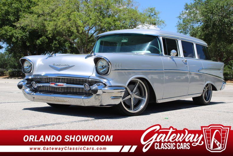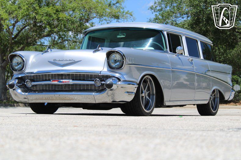 This 1957 Chevrolet 210 Townsman is more than just a car; it's an experience. Imagine yourself behind the wheel, the silver paint gleaming in the sunlight, the white interior wrapping you in comfort, and the sound of the V8 engine humming as you glide down the road. It's a ride that captures the spirit of a bygone era while delivering the performance and features to make every drive memorable.