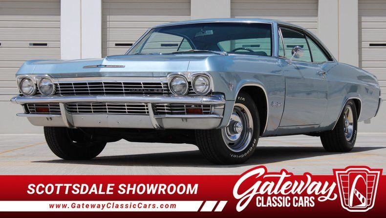 Gateway Classic Cars of Scottsdale is excited to digitally present this stunning 1965 Chevrolet Impala SS, finished in the timeless Mist Blue Metallic exterior paired with a matching blue vinyl interior. As you settle into the driver's seat, the classic styling of the Super Sport trim surrounds you, from the detailed SS badging to the clean, flowing lines of the dashboard. The original user's guide, still with the car, offers a glimpse into its history, while a folder full of invoices and receipts documents the care and attention it has received over the years.