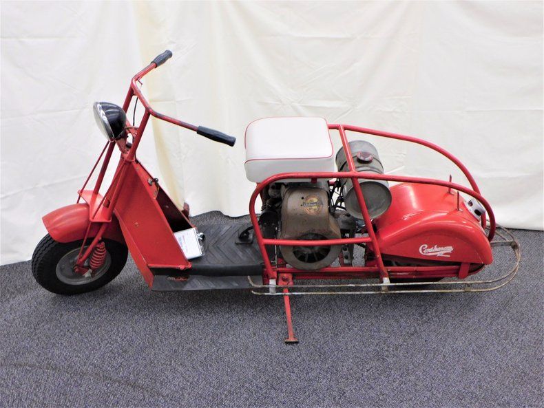 This 1948 Cushman comes to us from the estate of Dennis Carpenter. This is a running scooter. The consignor does not have a title for this scooter, but we will get it titled for you.