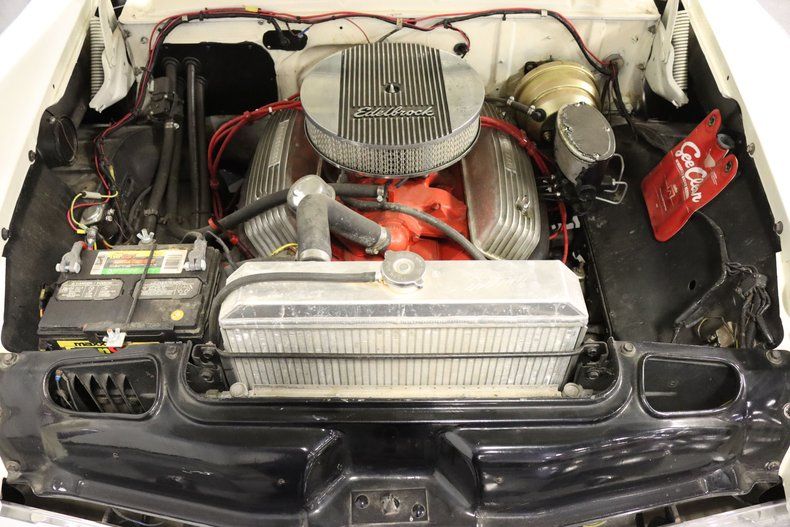 It's nice to see a Ford get upgraded in the engine bay while still keeping the power in the blue oval family. This is a correct-style 292 cubic-inch V8. It's said to be internally built for better power and modern times with a .030 over kit, milled heads, hardened valve seats, crankshaft turned .010 under, and given an Isky .425 lift cam. This inhales deeper with an Edelbrock four-barrel carburetor, and it exhales with added power and authority as Red's headers feed the dual exhaust. It also has good supporting components, like Offenhauser finned valve covers, an MSD ignition system, and an aluminum radiator with electric fan. This V8 fires up readily, and you are in complete control of the V8's power and soundtrack with the four-speed manual transmission. And there's an overall easy cruising attitude with power front disc brakes and sway bars front & rear.