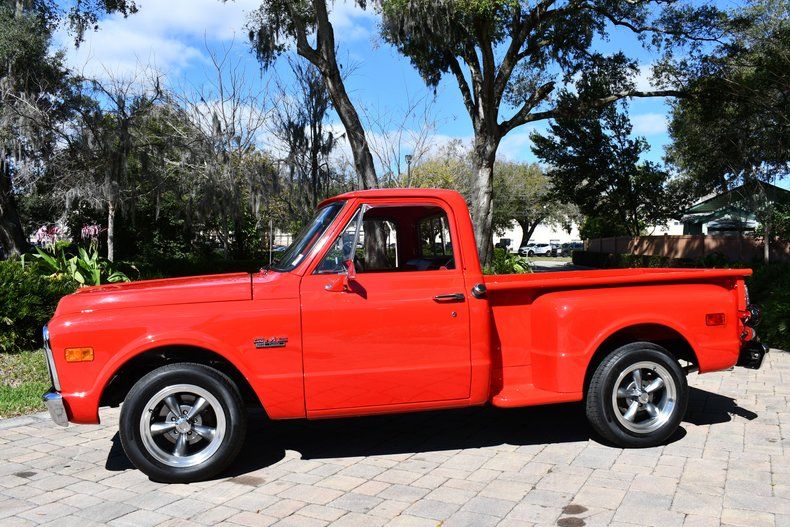 Spectacular Frame Off Restored 1972 GMC Pickup Short Bed Step Side :: Powered by 454ci V8 Engine, Automatic Transmission, High Gloss Flame Red Exterior, Two-Tone Deluxe Black and Red Houndstooth Interior, Vintage Air Conditioning, Power Steering, Power Brakes, Power Windows, Chrome Wheels, Dual Exhaust, Tilt Wheel, Factory Spec Sheet Still on Glove Box Door, Previously Part of the Bill Richardson Collection & Museum, Per Previous Owner 982 Miles Since Restoration Which was Completed in 2018, Simply Better then New In Everyway!! For more information call 863-899-1565 or 863-226-8590 or email sales1@primoclassicsint.com