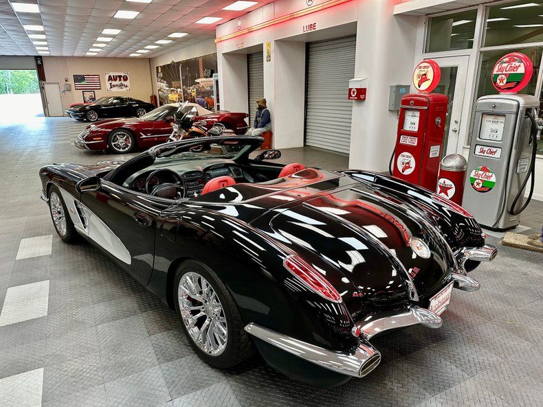 Just completed C1 Retro Vette conversion on a low mileage (40k miles) convertible that is equipped with the 2LT package. This stunning Corvette retains the comfort, safety and reliability of todays modern automobiles while embracing the classic C1 Corvette styling and appearance. The interior and all of it's features have not been altered in any way and function as factory intended. Also the chassis and drive train have not been altered or cut and sectioned in any fashion and all the air bag and security sensors are still in their factory locations. This particular C1 conversion is a 1958 convertible which utilizes original 58 chrome bumpers, grill, headlight buckets and spears, and the exhaust is routed out the rear bumper just like the original factory 58's.