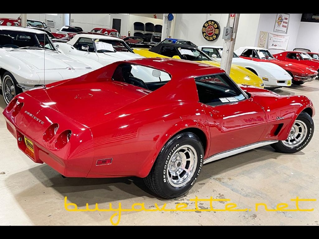 FREE SHIPPING! Were currently offering a $500 discount when shipping this vehicle. Please note that this promotion cannot be combined with any other offers or discounts. SEE MORE PHOTOS OF THIS CORVETTE, ALONG WITH MANY OTHERS, AT WWW.BUYAVETTE.NET! OUR VEHICLES RECEIVE A DETAILED INSPECTION, AND MOST COME WITH A LIMITED WARRANTY AT NO EXTRA COST. Red exterior, code correct Black leather interior. Numbers matching 250hp 350ci L82 engine, 4 speed manual transmission, posi rear-end. Features include air conditioning, power steering, power brakes, power windows, tilt-n-tele, AM/FM radio, deluxe (leather) interior, alarm, map light, slotted aluminum wheels. Nope, that's not a typo -- this 1974 Corvette L82 really has just 2,114 original miles, and has really had just one owner since it was purchased new in 1974! Assembled on September 24, 1974, this 1974 Corvette L82/4 Speed is in extremely nice condition throughout, and has full history from when it was new through 1987 when it had 2,101 miles, complete right down to putting gas in it! According to the included records, this car was repainted Red in 1975, shortly after its current aftermarket wheels were installed. This car's paint is good-vg, with a great shine, looking to be newer. All exterior glass in this car shows a correct date code. Weatherstripping is in good condition, and exterior door handles show a vg finish. Slotted aluminum wheels have been added. BF Goodrich Radial T/A raised white letter tires are BRAND NEW, and are currently mounted on the car. Presumably original Goodyear Steelgard raised white letter tires will also come with the car if desired, but please note that these tires are for show use only, and cannot be driven on at this point due to age. The interior of this 1974 Corvette L82/4 Speed shows vg-exc seats, carpet, steering wheel, GM seatbelts, door panels, gauges, and center console, and vg rear storage bins. Numbers matching L82 engine shows original casting date July 13, 1974, and final assembly date July 16, 1974. Correct air cleaner, carburetor, intake manifold, ignition shielding, valve covers, alternator, air pump, and a/c compressor are all in place, and the frame is solid and rust-free. '74s with miles and history like this don't come up often -- this is truly one of the nicest, best driving C3s we've ever had to offer, so be sure to check it out while we have it! 2K Miles. FREE 2 YEAR/50K ADDITIONAL MILE LIMITED WARRANTY, GOOD AT ANY REPAIR FACILITY NATIONWIDE!! Our Price: $39,999 or 20% down with payments as low as $569/month W.A.C.