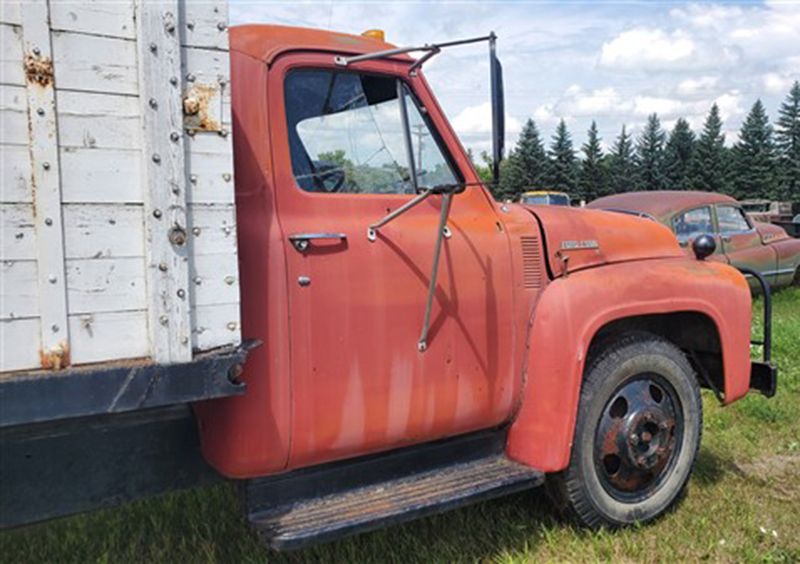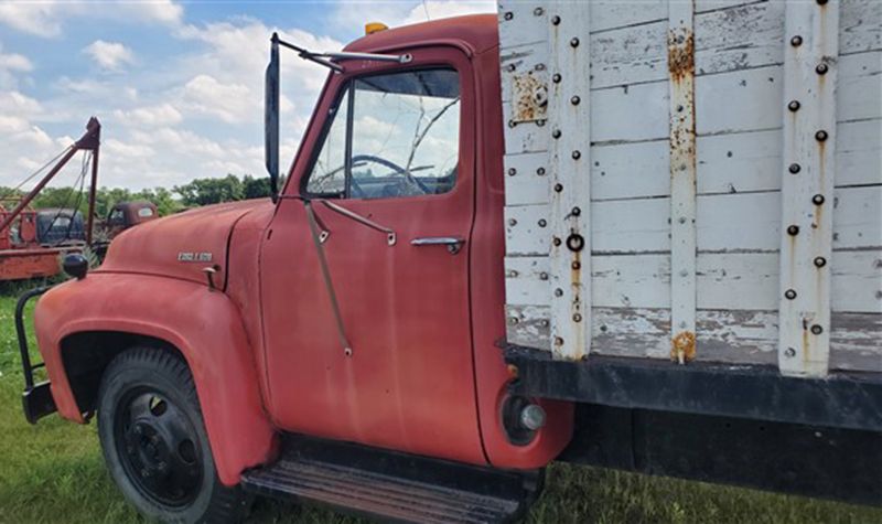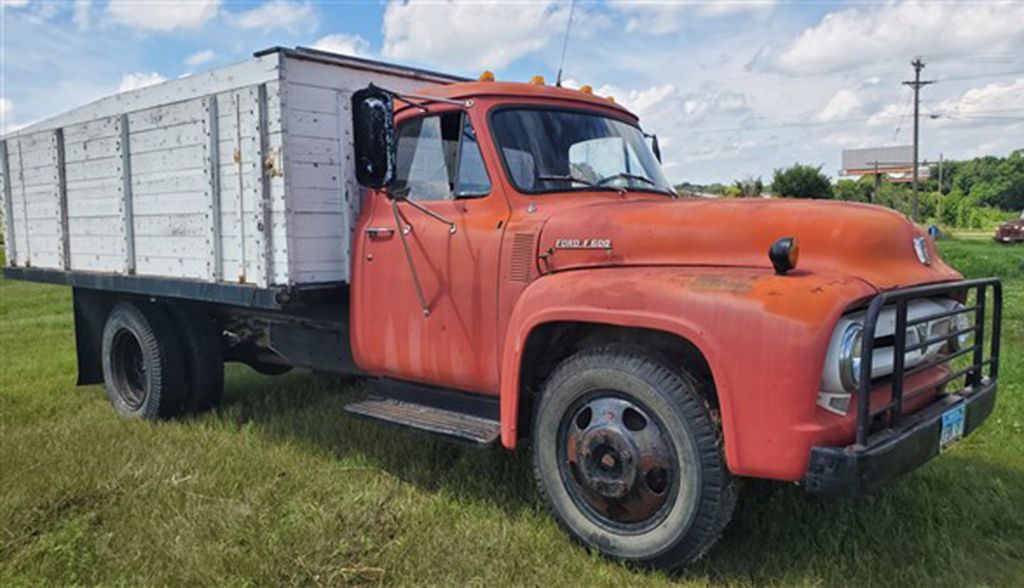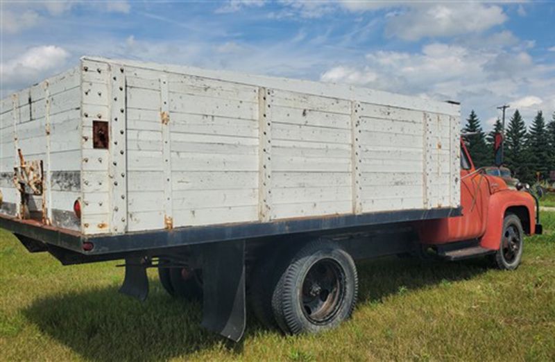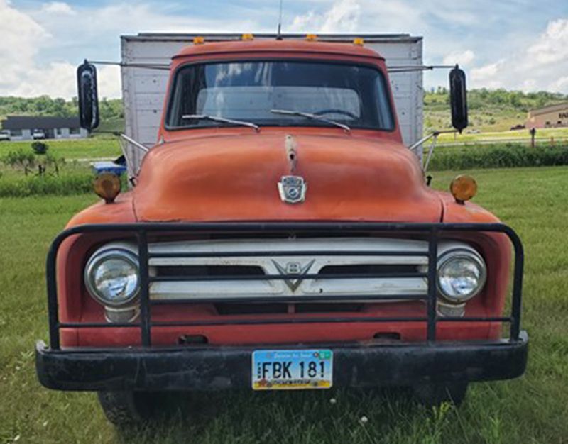 Nice Ford F600 with a 390 Ford motor, 4 speed transmission and 2 speed rear axle. Has a bit of rust on the hood. Otherwise I see no rust. Solid floors. The former owner put the 390 motor in and said it ran good but the last time he was going to use it, he thought it had a stuck valve so the motor may need some attention. Windshield is good but the flat glass will need to be replaced. The body looks quite good. Nice 13 1/2 foot box with a hoist. Nice grillguard. Good North Dakota Title and we will assist with delivery. $2,800