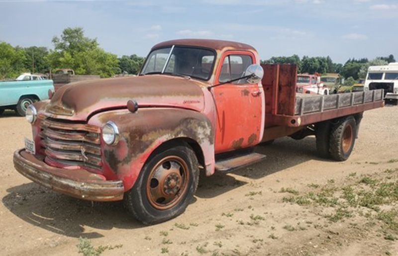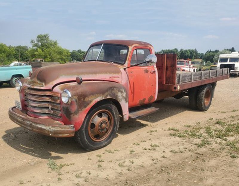 This is a very nice 2 Ton Chevrolet Truck with a good running 6 cylinder motor, 4 speed transmission and 2 speed axle. The Motor Vehicle Department has it titled as a 1 1/2 ton truck. Has a good steel framed 15 foot flatbed with a hoist. The wood deck is old and should be replaced. Shows 44,422 miles and this is believed to be actual. Very few dents and minimal rust. It will need a water pump and the usual fluid and light checks. Good Title and we can assist with delivery. $2,900