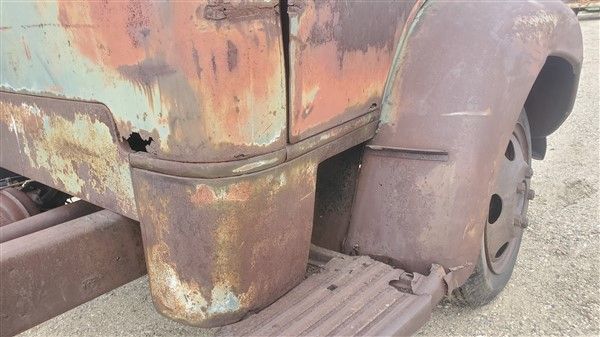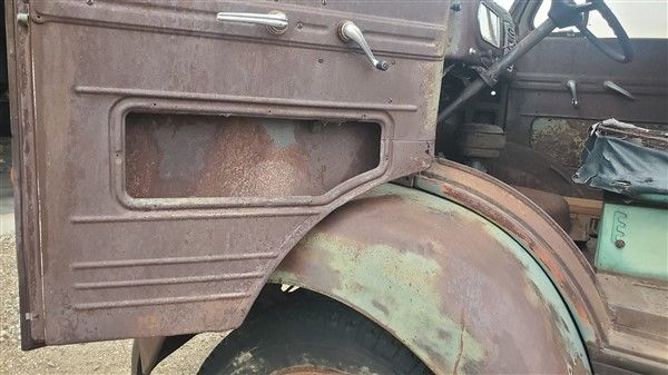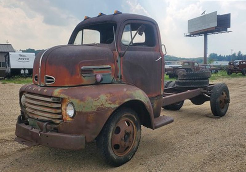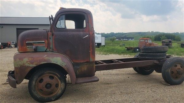This F-6 Cabover has just come in. It has a flathead 6, 4 speed and 2 speed axle. Quite complete. This truck has lots of bumps and bruises from 75 years of use. Has rust above the windshield and needs some work on the back of the cab. Floors and floor structure look read good. Motor cover is there. Has the chrome grill. Shows 58,000 miles. Good North Dakota Title and we will assist with delivery. $3,500