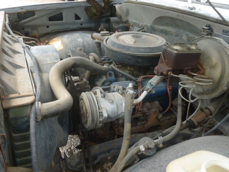 350 V8 (RUNS GOOD), BUT FUEL PUMP IS WEAK, SO IT WON'T STAY RUNNING VERY LONG. GOOD 4 SPEED TRANSMISSION. This neat little rig is complete. Yes has factory A/C, (but is not functional). (I believe it has a Denali seat:: but it is in good shape, just NEEDS A GOOD CLEANING.