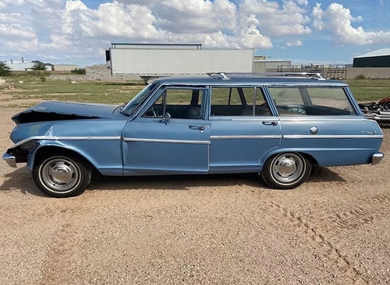 Front damage up and over the bumper as pictured, needs a pull for cowl / door alignment plus sheet metal as shown. Power is supplied by a 350 V8 w/ TH 350 trans and a 10-bolt rear end. This is a nice, solid little cruiser project with clean sheet metal, floors, and a very nice interior