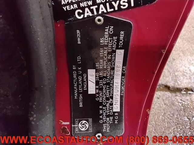 Details > 1977 MG MGB For Sale in Bedford, VA Private Party Sellers Click here to place your ad now! You auta tell them you saw the ad in AutaBuy when you call or email. 1/13 2/13 3/13 4/13 5/13 6/13 7/13 8/13 9/13 10/13 11/13 12/13 13/13 View 13 Photos View All Add to My Garage Parked in Your Garage! East Coast Auto Source Call: 540-586-5713 Contact Seller: I would like to: Make Offer Check Availability Ask A Question Request More Photos Check Financing Options Send a copy of this message to me Add this listing to my garage Send to Mobile Mileage 84,875 Exterior Color Red Stock # K158RDEK VIN GHN5UH419981G Estimated Monthly Payment $136 mo Apply Now J.J. Best Banc & Co. 1977 MG MGB Description: RUNS AND DRIVES; GOOD TITLE; CONVERTIBLE; NORMAL WEAR; INSPECTED AND READY TO GO · Mileage: 84,875 · Color: Red Price: $7,795. Mileage 84,875 Exterior Color Red Stock # K158RDEK VIN GHN5UH419981G Estimated Monthly Payment $136 mo Apply Now J.J. Best Banc & Co. Add to My Garage Parked in Your Garage! Call Seller Message Seller East Coast Auto Source Call: 540-586-5713 Contact Seller: I would like to: Make Offer Check Availability Ask A Question Request More Photos Check Financing Options Send a copy of this message to me Add this listing to my garage Offered for sale by East Coast Auto Source Call 540-586-5713 BEDFORD, VA Mention AutaBuild.com when you call. Price: $7,795. Offered for sale by East Coast Auto Source Call 540-586-5713 BEDFORD, VA Mention AutaBuild.com when you call. [entire inventory] Ask Auta Intelligence The first collector-car AI built directly into a classic car marketplace What makes this model desirable to enthusiasts? Which years was this body style produced? How much horsepower does this have? What's the typical 0-60 time for this configuration? How far is this from me? Can you show me more sports cars for a similar price? Which engines were most common for this year? How many MGBs were produced in Red? What movies featured cars like this? How many of these were produced? Tell me about this model What nicknames does this model have? What trim levels were available for this model? Where is this located? What makes this model year special? What colors did these come in? What does this VIN number tell me? What factory options were available on this model? Can you show me more convertibles? What's the typical 1/4 mile time for this setup? What makes this model desirable to enthusiasts? What engine options did these come with? What transmission options did these offer? When was this model first introduced? Do you have a similar car to sell? List It Now! Questions about this car? Ask Auta Intelligence for production numbers, available options, etc. · Subscribe to AutaBuy! · Send a Gift Subscription Notice to a Friend