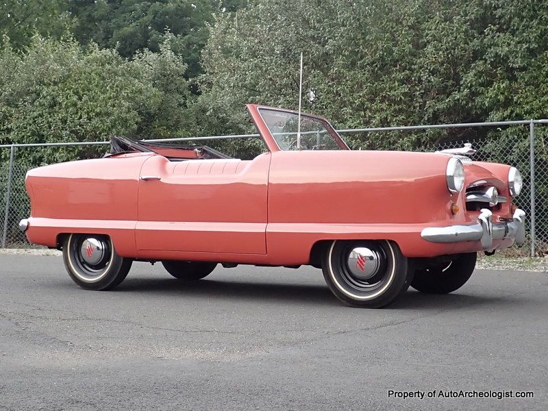 ![]() Click on the image for a larger picture. 1954 NASH METROPOLITAN CONVERTIBLE 1954 Nash Metropolitan convertible We know the story of roughly the last 30 years of this little Metropolitan runabout. It was purchased in the 90's by previous owner, who had her painted and did some work to her, like patching the passenger floor, adding spring spacers, brakes and brake lines, and replaced muffler - back. He drove her and enjoyed for quite a few years but then about 10-12 years ago, she was parked and hadn't moved since until the Foster Father of Orphaned Automotive Souls found her and brought her back to life. New motor mounts were installed, she was cleaned and buffed, valves adjusted and the water pump was greased. At some pint in her life, she had an engine transplant to a larger 1500 series up from the original 1200 series engine. The Nash Metropolitan was quite the amalgam of manufacturers and designers. Nash teamed up with British Austin Motors and with Italian designer Pinin Farina and all combined to produce this little car. It was designed in both Italy and the US and then assembled in England with many chassis and engine bits from the Austin Motor Company. This one shows 7506 miles on the odometer, however, with the engine transplant, it is unknown what the true mileage is. The paint is in very nice condition and the spartan interior is pretty darned good condition too. Unfortunately, the rubberized weatherstrip adhesive for the soft top liquefied and leaked down on to the visors. The steering wheel is cracked in a couple spots, but the carpets, seats, door cards, dash, the one gauge (speedometer with integrated fuel gauge) are all in rather nice shape. The convertible top is also in quite good condition and folds up/down rather easily. Turn the key, adjust the choke, pull the start button and with a couple pumps of the gas, she fires right up and then warms to a smooth idle. The three on the tree shifts easily and she accelerates up to 60 MPH in just about 22 seconds... OK, she's not fast but she's a blast to drive around town and out on secondary roads. She'll get waves and smiles wherever she goes. (In the video the fuel pump starts making noise as the tank was just about empty) Her worst aspect is her undercarriage. Although rusty, it's not rotted anywhere and she rides and drives just fine for a car that has just turned 70 years old. You can take her out and enjoy her just as she is, and with some deep cleaning and detailing she might take home a ribbon. She is also a very solid foundation if someone was contemplating a restoration. Asking price is $13,200 Any questions, for many more photos and video, to schedule a time to see her in person or to make an offer, please don't hesitate to contact me. Thank you for the interest!