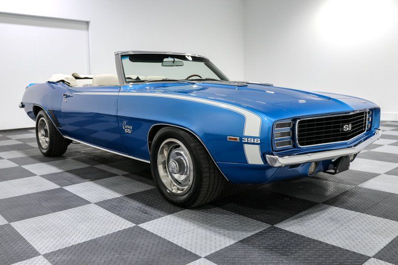 ![]() Click on the image for a larger picture. 1969 CHEVROLET CAMARO CONVERTIBLE 1969 CHEVROLET CAMARO RS/SS CONVERTIBLE Give us a call at 903-891-0000 with any questions! Financing and shipping available! This 1969 Chevrolet Camaro RS/SS Convertible is a show-stopping blend of iconic style and big-block muscle. Finished in a striking blue with a clean white Houndstooth interior, this X22-coded SS396 car packs the legendary 396 Big Block under the hood, delivering the kind of power that made this era of Camaros so sought after. Paired with a 700R4 automatic overdrive transmission, it's not just built for raw performance but for comfortable cruising too-whether you're rolling with the top down or tackling the open road. With its SS heritage, this Camaro is all about power and precision. Equipped with a Weiand aluminum intake and a Holley carburetor feeding the big block, it breathes freely and pushes serious torque. The dual exhaust system ensures it sounds just as fierce as it performs. Power steering and power brakes with front discs make for confident control, while the iconic SS hood and rear spoiler add the unmistakable performance aesthetic. Whether cruising or racing, this Camaro is as functional as it is stylish. Inside, the classic Houndstooth bucket seats and horseshoe shifter deliver that authentic '60s muscle car vibe. The Comfort Grip steering wheel keeps things practical and comfortable, while modern upgrades like the Optima battery ensure reliability. The interior is a perfect balance of vintage charm with just enough modern touches to make driving this Camaro a real pleasure. The bucket seats with console provide both comfort and the cool factor that enthusiasts crave. Exterior-wise, the hideaway headlights and 15-inch Chevrolet Rally wheels give it that unmistakable Camaro RS/SS look, turning heads wherever it goes. The chrome valve covers, air cleaner, and polished details under the hood are as much about show as they are about performance. Every inch of this Camaro has been crafted with attention to detail, ensuring it looks as good parked as it does tearing up the street. If you're looking for a classic Camaro that checks all the boxes-style, power, and the kind of rarity that stands out-this 1969 RS/SS Convertible is the real deal. A big block, modern overdrive transmission, and stunning presentation make it the perfect combination of performance and nostalgia, ready to impress both on the road and at any show. VEHICLE OPTIONS: - Houndstooth Interior - Power Steering - Power Brakes - Front Disc Brakes - Dual Exhaust - Weiand Aluminum Intake - SS Hood - Rear Spoiler - Power Convertible Top - Optima Battery - Horseshoe Shifter - Holley Carburetor - Hideaway Headlights - Comfort Grip Steering Wheel - Chrome Valve Covers and Air Cleaner - Bucket Seats w/ Console - 15 inch chevrolet rally wheels OPERATIONAL ASSESSMENT: Functioning: Yes/No Yes - Runs Yes - Heater Yes - Brake Lights Yes - Turn Signals Yes - Fuel Gauge Yes - Temperature Gauge Yes - Headlights Yes - Horn Yes - Speedometer Yes - Oil Pressure Gauge Yes - Tail Lights No - Radio Yes - Wipers