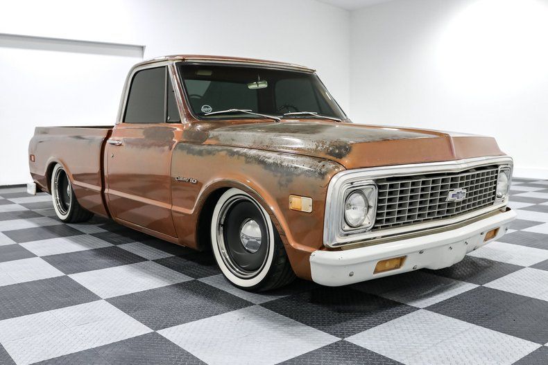 ![]() Click on the image for a larger picture. 1971 CHEVROLET C10 This 1971 Chevrolet C10 isn't just another classic pickup-it's a masterpiece of modern performance wrapped in timeless style. Powered by a Blueprint 350ci V8, this C10 is boosted with a Procharger P1SC1 supercharger, delivering serious horsepower that matches its aggressive stance. Paired with a 700R4 automatic transmission, it's built for smooth cruising and hard launches alike, making it as versatile as it is powerful. The ride is equally impressive, featuring an air ride suspension system for adjustable height and comfort, paired with RideTech shocks and lowering springs to hug the road in every corner. The 18-inch Detroit Steel wheels with baby moons complete the look, giving this truck a street rod vibe with just the right amount of attitude. With front disc brakes, power steering, and power brakes, it's not just fast-it's built to stop and handle with precision. Inside, the custom white vinyl bench seat with cupholders adds a touch of modern convenience, while the Autometer Phantom gauges keep you informed at every RPM. The tilt steering column and custom air cleaner round out the interior, blending function and style seamlessly. This truck is as comfortable as it is cool, offering a laid-back driving experience without sacrificing performance. Under the hood, the details shine-literally. Ceramic-coated mid-length headers, a Holley Sniper EFI system, and dual electric fans ensure the engine runs cool and efficient, even when pushed to the limit. The serpentine belt drive and aluminum finned valve covers give it that polished, high-performance look, while the C-notched rear ensures the perfect stance. With its procharged power, modern upgrades, and vintage cool, this 1971 Chevrolet C10 is a one-of-a-kind truck that stands out from the crowd. Whether you're looking for a head-turning showstopper or a high-performance driver, this C10 offers the best of both worlds-classic style with a modern punch. VEHICLE OPTIONS: - Procharger P1SC1 Supercharger - Blueprint 350CI V8 - 18 Inch Detroit Steel Wheels with Baby Moons - Power Steering - Power Brakes - Front Disc Brakes - Dual Exhaust - Tilt Steering Column - Serpentine Belt Drive - RideTech Shocks - Lowering springs - Holley Sniper EFI - Dual Electric Fans - Drop Spindles - Custom Bench Seat with Cupholders - Custom Air Cleaner - Ceramic Coated Mid Length headers - C Notched Rear - Autometer Phantom Gauges - Aluminum Finned Valve Covers OPERATIONAL ASSESSMENT: FUNCTION "-YES --NO " - Brake Lights " - Headlights " - Tachometer " - Runs " - Temperature Gauge " - Wipers " - Fuel Gauge " - Tail Lights - - Horn " - Oil Pressure Gauge " - Speedometer " - Turn Signals