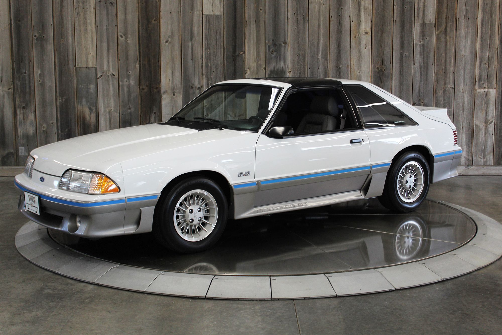 ![]() Click on the image for a larger picture. 1987 FORD MUSTANG GT ONE OWNER - UNRESTORED SURVIVOR - T-TOP car. With an astoundingly low ORIGNAL 42,079 pampered miles. Stored its whole life indoors, taken out for the occasional spin around the block or to a car show. This is very likely one of the best examples surviving today with comparable miles. Seriously this car is sharp! This stunning Mustang appears to retain all of its original paint, badging, stickers, drivetrain, interior etc. and it looks new! TIME CAPSULE CONDITION!!! This 1987 Ford Mustang GT 5.0 is finished in Oxford White over a Medium Gray cloth interior. Power is provided by a 5.0-liter V8 mated to a five-speed manual transmission and a Traction-Lok differential. Additional equipment includes transparent removable T-top panels, a rear spoiler, fog lights, a blue accent stripe, air conditioning, power accessories, and a factory AM/FM cassette player which has been restored and sounds fantastic. Acquired by the selling dealer in September 2024 from the original owner. This Fox-Body Mustang is being offered with factory literature, window sticker copy, numerous service records, owner's manual, original bill of sale, warranty card, two sets of keys, accident-free, and a clean title. The car is finished in Oxford White with a blue accent stripe on the bumpers and lower body cladding. Additional exterior details include transparent removable T-top panels with vinyl covers, fog lights, a rear spoiler, black side mirrors, and louvered taillights. Close-up images of the paint, lenses, trim, and body panel VIN tags are shown in the gallery. You’ll notice in the images on the lower cladding of the front bumper on the passenger side some horizontal stains that look like a liquid dripped down and stained the gray paint. The previous owner didn’t know what the chemical was that put those stains there but says they’ve been there a long time. To make the front lower area perfect those would need to be repainted. Fortunately, its only on the gray portion of the bumper so it would be relatively easy to paint. Factory 15” wheels are mounted with an older set of 225/60 tires. Stopping power is provided by power-assisted front discs and rear drums. The Mustang GT came standard with progressive-rate front and rear coil springs and ‘Quadra Shock’ rear dampers, which added an additional pair of horizontally oriented shocks ahead of the rear axle. The cabin features seating surfaces trimmed in Medium Gray cloth with matching door panels and carpeting. Amenities include air conditioning, power windows and locks, cruise control, and a restored factory AM/FM cassette player with a graphic equalizer. A two-spoke steering wheel, instrumentation consisting of a tachometer, an 85-mph speedometer, and gauges for voltage, coolant temperature, oil pressure, and fuel level. The five-digit odometer shows 42,079 miles. Odometer readings are reflected in the service history supporting the mileage as correct. Production numbers for Oxford white GT Hatchback (P42E): was 6,799.