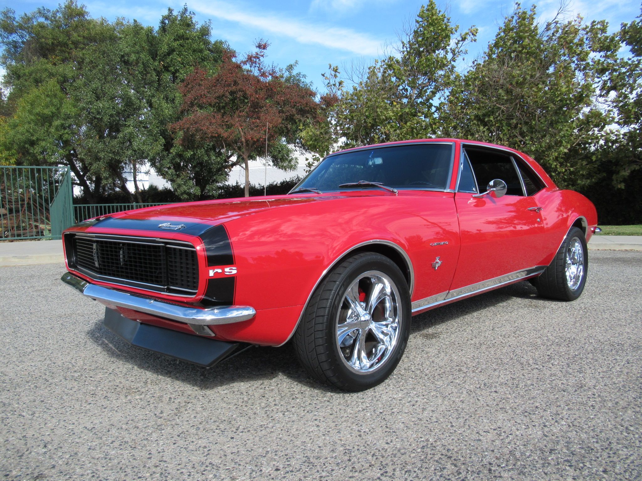 ![]() Click on the image for a larger picture. 1967 CHEVROLET CAMARO RS This Classic Camaro already has all the popular upgrades and is ready to burn rubber! Finished in Bolero Red with the factory RS package including the super cool hideaway headlights and a beautiful set of Chrome 17 inch Boyd Coddington wheels to fill up the wheel wells. Under the hood sits a fresh ZZ383 GM Performance crate motor rated at 425 Horsepower with aluminum heads, polished Edelbrock aluminum Intake, Edelbrock Carburetor, Ball milled aluminum valve covers and matching air cleaner, aluminum radiator, Rewarder custom made headers with dual Flowmaster mufflers run to the rear. Power gets put to the road with an upgraded Tremec 5 speed manual transmission, custom driveshaft leading to a 10 Bolt 3.73 Posi-Traction rear differential. With all that power you need to stop and steer too, so more additions include Global West Tubular control arms with a 1.25 inch front sway bar, multi-leaf rear springs, SSBC 4 wheel power disc brakes, Tuff Stuff power steering and some KYB shocks. The factory Deluxe Black interior looks great and includes bucket seats, center console with gauge package, factory tachometer, Muncie shifter, Tilt steering column with original steering wheel, cold factory A/C with upgraded compressor and an old school Kenwood AM/FM Cassette player with trunk mounted CD changer if you still have some of those. This rust free Los Angeles built California Camaro was owned by the previous owner locally for the last 20 years and was a labor of love. Time to pass the torch and go and make some memories!