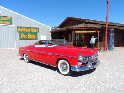 ![]() Click on the image for a larger picture. 1955 CHRYSLER WINDSOR CONVERTIBLE WE JUST SOLD THIS VEHICLE! WAS $25,000- PRICE DRASTICALLY REDUCED TO ONLY $19,995 OBO. We accepted a reasonable offer. And, this car is going to its' new home. 1955 Chrysler Windsor Convertible. There were only 1,395 of these convertibles built. This car is not quite finished. We have rebuilt the top bows so now it needs a top and the hydraulics. This car Runs and Drives Nice and Smooth. Has the original (301 V8), with the original automatic transmission, (shifts smooth). Power steering. This is a super neat looking car. Red exterior, and red and white vinyl interior. Was repainted several years ago, and still looks nice. Always garaged. Interior is older, but still looks good. Glass is good. This car is currently in our museum, and we do drive it, and is it ever fun! As YOU CAN SEE IN SOME PHOTOS, WE HAVE PUT NEW WIDE WHITEWALLS, ON FACTORY CHRYSLER Imperial Wire Wheels. Radio DOES NOT WORK. I did fix windshield wipers and the heater. Does not have factory air conditioning. This car has had a lot of rust repair that was done before we owned this convertible. There are no rusted through spots that we can find. Trunk floor has been replaced. Bumpers are straight and have been rechromed at some time in the past. WE JUST REPLACED THE COMPLETE TAIL LITE ASSEMBLIES AND HOUSINGS. NICE CHROME! This is not a car show car but a REAL NICE looking driver. Yes, you will get a clear title for this convertible, AND NO EXTRA DOCUMENT OR TITLE FEES EITHER. Shipping is available worldwide. WAS $25,000- PRICE DRASTICALLY REDUCED TO ONLY $19,995 or Best Offer. For more information, call Bill at Motion Unlimited Museum, Rapid City, South Dakota. 605-348-7373 AutaBuy sold this car to a buyer in Indiana. A very happy customer. He had been looking for a Mid 1950's Chrysler convertible for several years. She went to a good home.