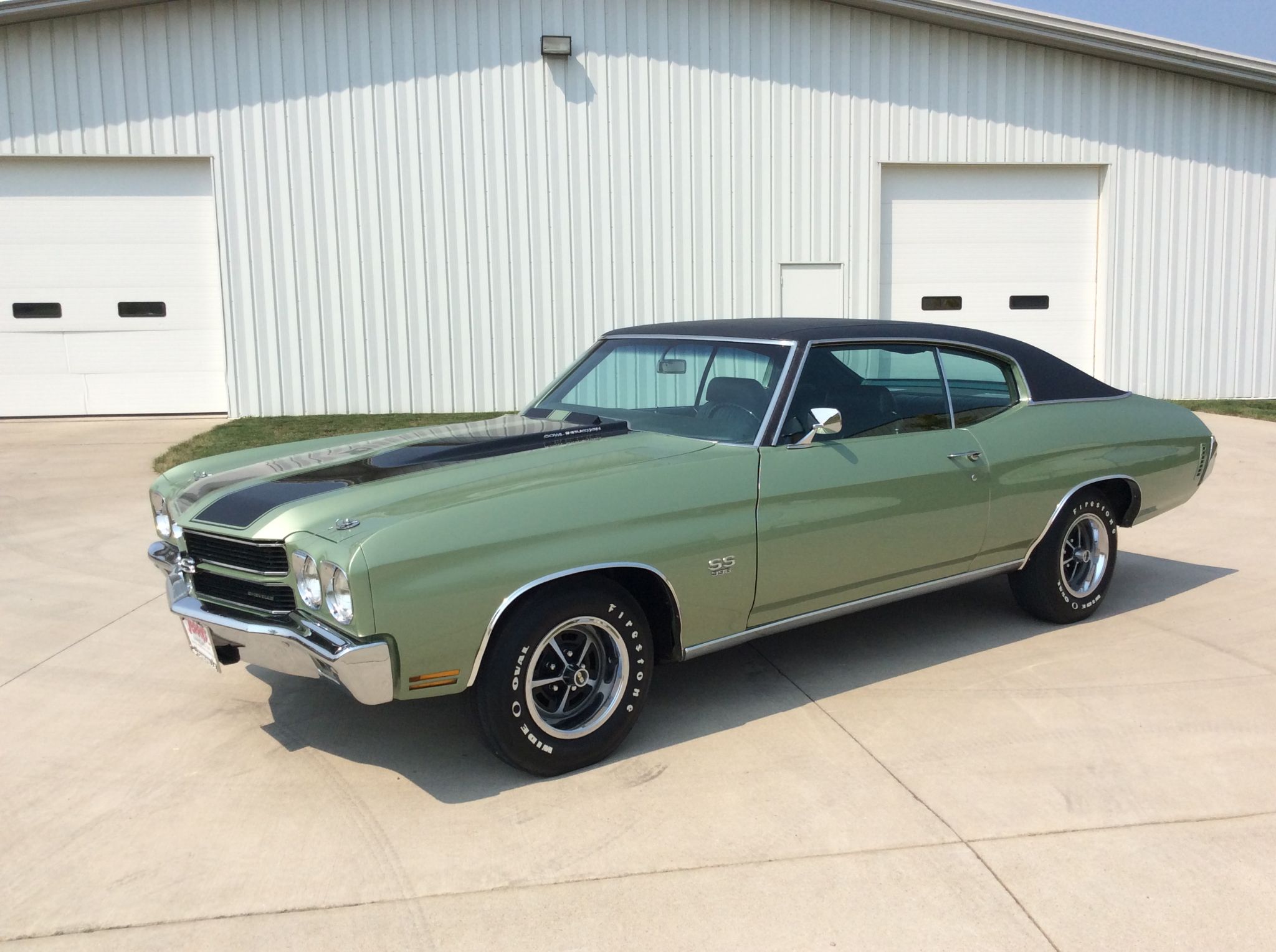 ![]() Click on the image for a larger picture. 1970 CHEVROLET CHEVELLE SS 396 Green Mist w/Black vinyl top/Dark Green vinyl seats. 350hp 396 V8, automatic, p/ steering, p/ brakes, cowl induction hood, bucket seating, center console, AM radio, rear speaker, tinted glass, positraction rear end, Rally wheels, Firestone Wide Oval rwl tires. Numbers matching local 3 owner car. Complete frame off restoration. Perfect condition. Only 86,700 original miles. Our price: $53,997. Stock #132812