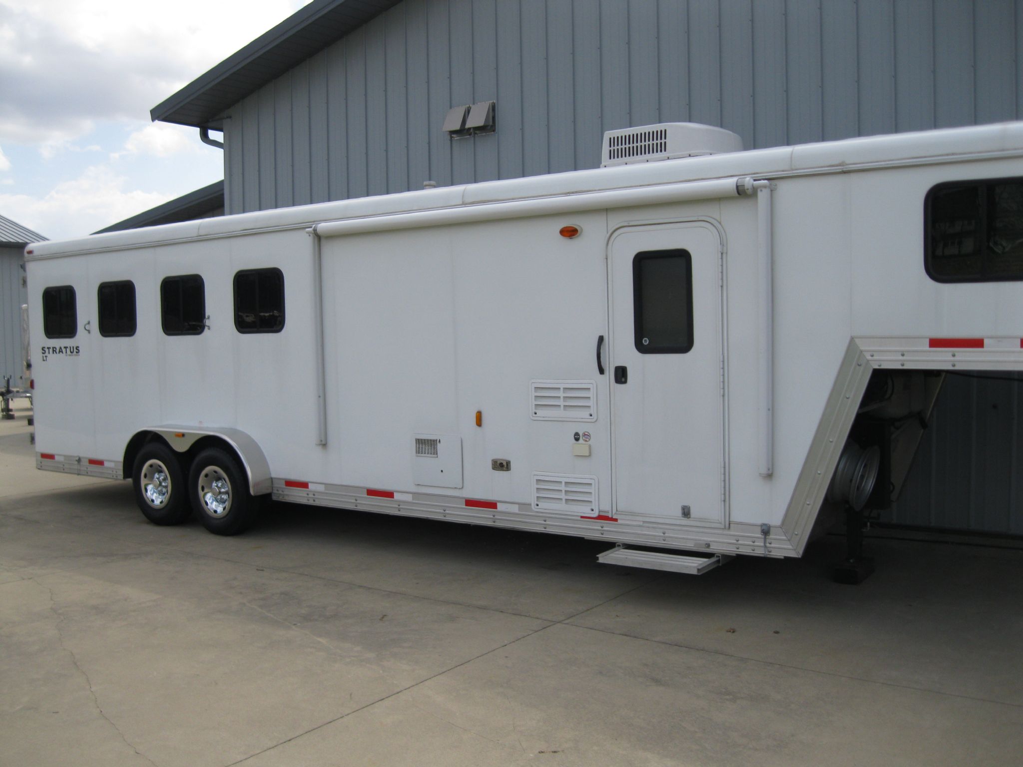 ![]() Click on the image for a larger picture. 2013 BISON STRATUS LT 2013 BISON STRATUS LT Considered a 4 horse trailer. 34' overall. Conversion is 9' on floor +shower and commode. 7' on bed deck +cabinet in V. Refrigerator, microwave, sofa, furnace and Air conditioner with heat strip. 12' power awning and electric/hydraulic jack. Unit is in very good condition, cleaned inside and ready to use for $19,995