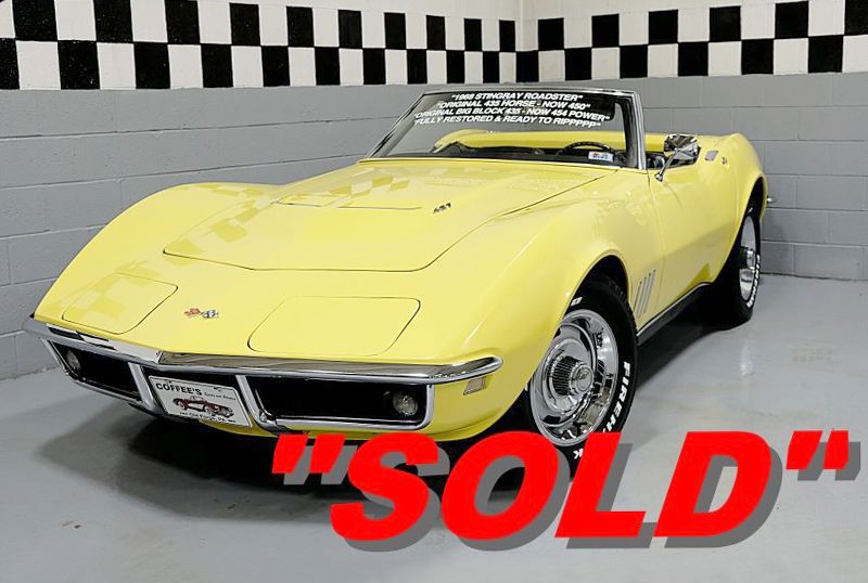 ![]() Click on the image for a larger picture. 1968 CHEVROLET CORVETTE CONVERTIBLE “SOLD” “SOLD” “SOLD” “To A New Home In Florida” “Thank You Again Kerry” “Hope That You And Daniel Share A Lifetime Of Memories With “The Beast” “May The Sun Always Shine For You, Your Loved Ones And This Awesome Corvette!!!” “There’s Something Special A About Shark Roadster With It’s High Peak Fenders And Sweeping Body Lines —— Simply Gorgeous And Unique To This Generation” “This “Bad Boy” Has All The Sound And Fury From The Fabulous Muscle Car Era” “With Striking Colors, Massive Power, Must Have 4-Speed And Hi-Po Equipment, This Big Block Roadster Is Truly Awesome And Perhaps The Perfect Corvette For You!!!” “A Blast Through The Gears In This Ground Pounder—— Priceless” “Life Is Short — Enjoy Your Ride!!!” $59,900 “Make It Happen Now” jerry@coffeescorvettes.com 570-457-7423 “CHECK OUT THIS ICONIC CHROME BUMPER CORVETTE!!!” “A BIG BLOCK ROADSTER FROM THE HEART OF THE MUSCLE CAR ERA” “STUNNING SAFARI YELLOW EXTERIOR FINISH” (code 984) “BEAUTIFUL BLACK VINYL INTERIOR APPOINTMENTS” “EXCELLENT BLACK CONVERTIBLE TOP” “ORIGINAL L71 427/435 V8 UPGRADED TO AN EVEN MORE POWERFUL “454” MONSTER!!!” (not original engine block) “ORIGINAL M21 CLOSE RATIO 4-SPEED TRANSMISSION” (#s matching) “ORIGINAL G81 POSI REAR AXLE WITH 3.70 RATIO” “OPTIONAL K66 TRANSISTOR IGNITION” “OPTIONAL F41 FRONT AND REAR SUSPENSION” “SWEET SOUNDING CHAMBERED EXHAUST SYSTEM” “UNIQUE POWER-BULGE BIG BLOCK HOOD” “POLISHED SIDE LOUVER TRIM” “POWER STEERING AND POWER DISC BRAKES” “EXCELLENT ORIGINAL INSTRUMENTATION WITH HIGH HORSE TACH” “ORIGINAL EQUIPMENT AM-FM RADIO” “ORIGINAL DATE CODED GLASS” “CORRECT 15×7 RALLY WHEELS WITH WHITE LETTER RADIALS” “EXCELLENT CHROME AND POLISHED TRIM” “CORRECTLY DETAILED ENGINE COMPARTMENT RETAINING MANY ORIGINAL COMPONENTS INCLUDING TRIPLE CARBURETORS, AIR CLEANER, INTAKE MANIFOLD, SHIELDED IGNITION SYSTEM AND PLUG WIRES, CHROME VALVE COVERS, CYLINDER HEADS, EXHAUST MANIFOLDS AND RARELY SEEN EMISSION SYSTEM” (see photos) “LIKE-NEW UNDERCARRIAGE FEATURES AN EXCELLENT FRAME AND UNHARMED FLOOR PANS” “COMPREHENSIVE CHASSIS RESTORATION INCLUDES THE FOLLOWING NEW OR REBUILT COMPONENTS: BRAKE SYSTEM, SHOCK ABSORBERS, STEERING LINKAGES AND COMPONENTS, FUEL AND BRAKE LINE SETS, U-JOINTS, TRAILING ARMS, FRONT AND REAR SUSPENSION ++++ MUCH, MUCH MORE!!!” (see photos) “WITH AWESOME PERFORMANCE, A BLAST THROUGH THE GEARS WILL STIR YOUR SOUL!!!” “A TRUE RELIC FROM THE FABULOUS MUSCLE CAR ERA, SHE’S DROP DEAD GORGEOUS AND READY TO RIPPPPPPP!!!!”