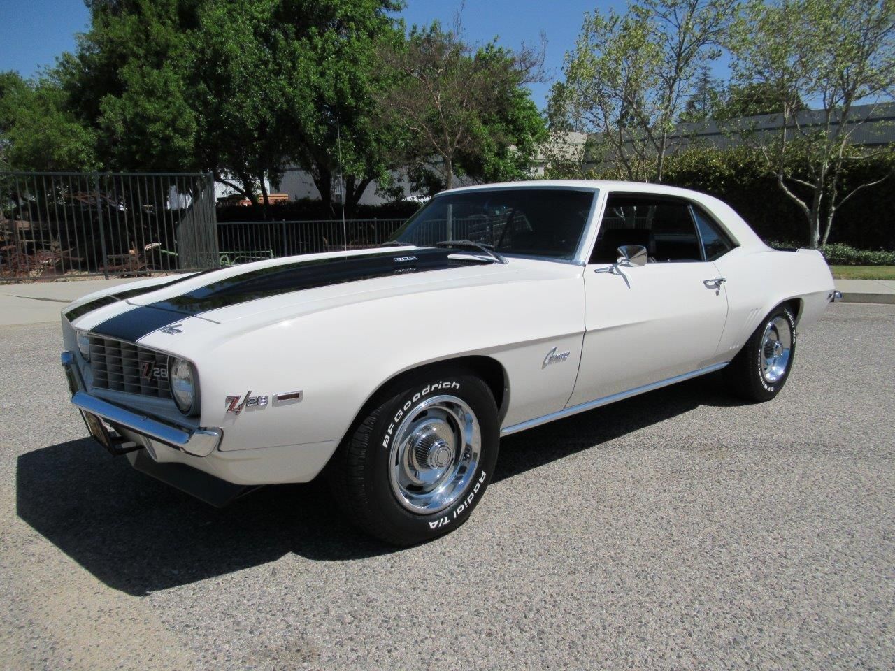 ![]() Click on the image for a larger picture. 1969 CHEVROLET CAMARO Z28 One of the best and most recognizable muscle cars in history! A 1969 Camaro Z28 finished in rare Dover White with Tuxedo Black stripes and a simple black vinyl interior with factory head rest seats. This un-restored black plated California car was built at the Van Nuys plant and has only 91k original miles since new. Options are sparse on these cars but this one has the original gauge package in center console, factory tachometer, original AM Radio, Rally wheels with raised white letter BFG radials and front and rear spoilers. Under the cowl induction hood sits the original matching number DZ code 302 V8 backed by a M21 4 speed manual transmission, 12 Bolt Posi-traction differential with 3.73 ratio, power disc brakes and a notebook full of receipts, research and even a Jerry MacNeish Certificate of Authenticity! This is an excellent investment car to add to any collection.