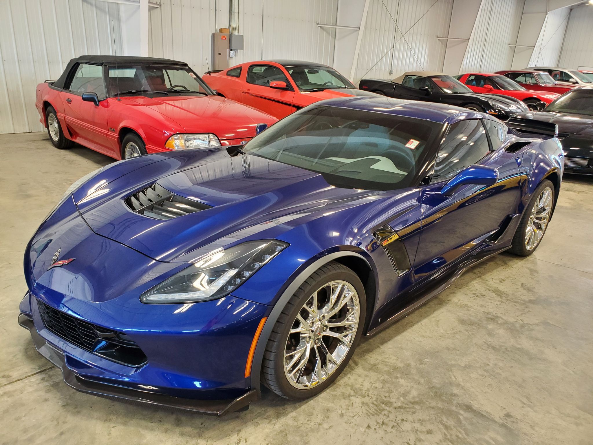![]() Click on the image for a larger picture. 2018 CHEVROLET CORVETTE Z06 COUPE Admiral Blue Metallic/Gray Sport seats. Supercharged 650hp LT4, 8 speed paddleshift automatic, magnetic selective ride control suspension w/PTM & launch control, 2LZ preferred equipment group, heads up display, p/heated & ventilated seats, Bose Centerpoint audio system w/ steering wheel controls, XM satellite radio, Onstar, Bluetooth, leather flat bottom steering wheel, dual zone air, memory, floor mats, tinted glass, Carbon Flash Metallic badging, Carbon Flash Metallic rear spoiler, dual mode performance exhaust, splash guards, carbon fiber ground effects, drilled brake rotors, Black brake calipers, Z06 chrome wheels. Warranty start date 1/11/2019. One owner. Only 4,700 miles. Our price: $82,997. Stock #AC2415