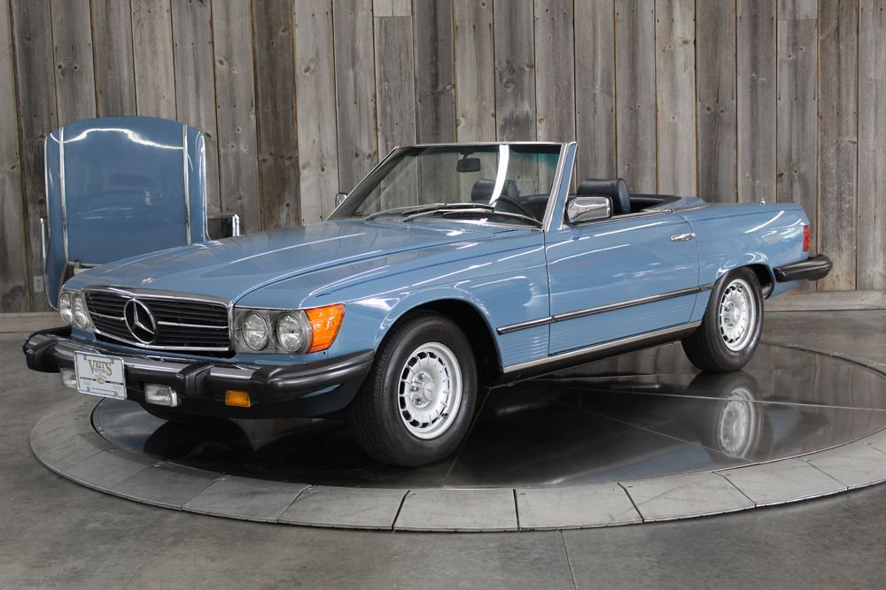 ![]() Click on the image for a larger picture. 1980 MERCEDES-BENZ 450SL This 1980 Mercedes-Benz 450SL is best described as a contemporary classic. The Mercedes-Benz 450 SL was produced from 1973 through 1980. 1980 was the last year for the 450SL. Production started in February and ended in October. This 450 is one of only 5,583 450SL’s produced in 1980. Its timeless body design is still regarded as a graceful and elegant shape. Featuring the 4.5-litre V-8 engine offering a top speed of 135 mph, and presents a harmonious courtship of understated prestige with sporty flamboyance, its 4-wheel independent suspension delivers excellent cornering capability while maintaining a supple ride quality. Gently driven only 73,217 miles and presented in beautiful China Blue (code 934) exterior with a contrasting blue leather interior. This fully optioned 450SL comes complete with its original steel hardtop, and cloth (blue) Soft-Top as well. Always Garaged, and maintained at a high level. Recent repairs include, Newer Exhaust from the CAT back, new plugs, newer tires, new fuel filter, new vacuum lines and Newer Battery. The AC is also new, with new compressor, temperature switch and drier. Converted to R134 it works beautifully and blows cold. The blue leather interior is in very good condition, seats are super clean as is the wood, rear compartment carpet is clean and remains unstained and shows no signs of fading. The trunk carpet is very good and still holds it’s shape nicely. Everything works, very nice handling and comfortable car to drive. Body is in Near perfect condition, no dings or scratches as you'd expect for a beauty of this caliber. The paint is gorgeous and remarkably still original from all indications. The blue cloth soft top is clean and shows little wear as does the plastic window, it's still clean and clear. The hard top is good and still shines with no staining on the interior headliner. The car shows no indication of accident history and has been maintained properly. Comes with it's owners manual and hard and soft top key handle and spare (hard top dolly in pictures not included) This remarkable example is a rarity that is impossible to duplicate and any enthusiast of the marquee would be proud to own. SMILES not included but are unavoidable.